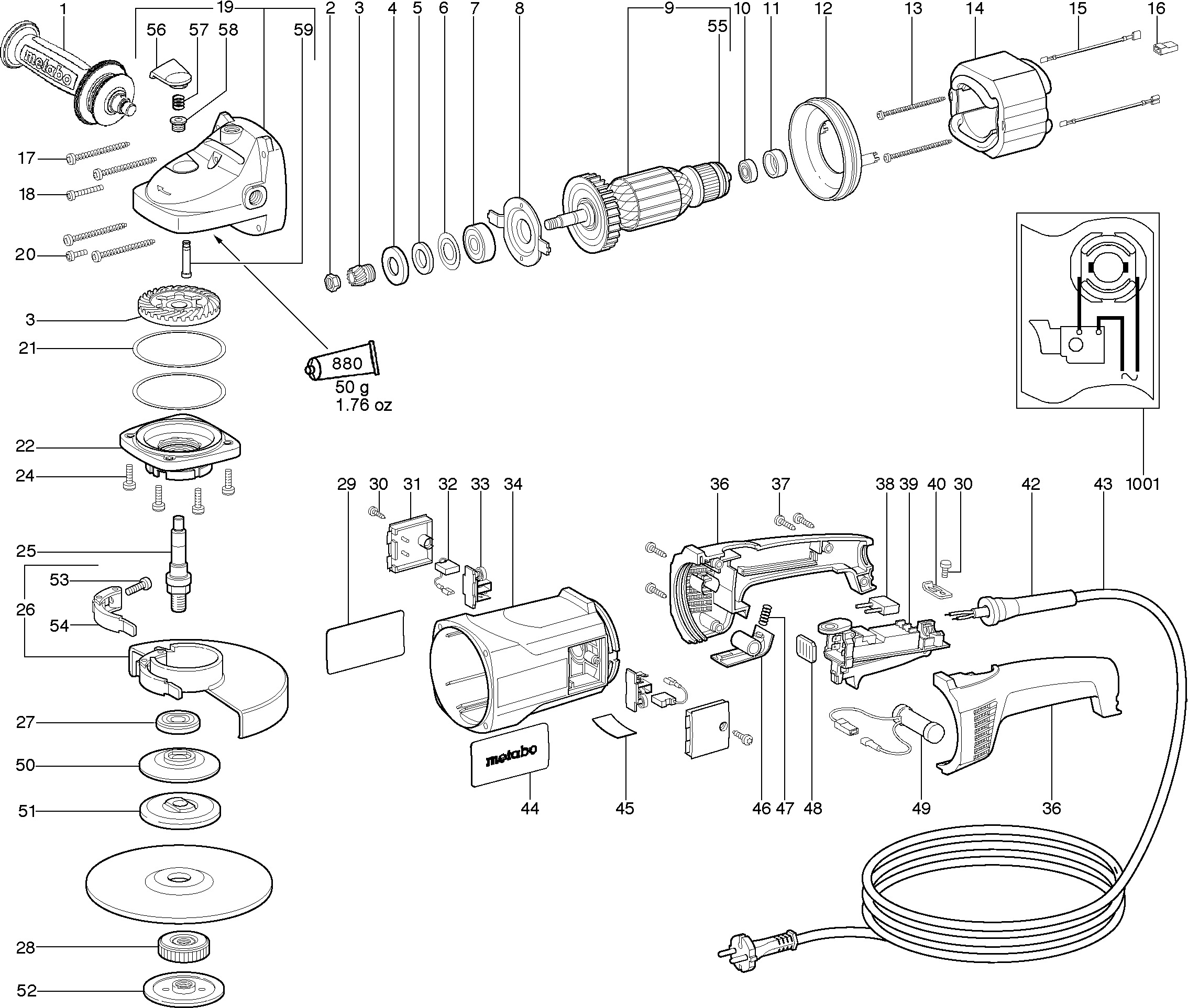 Here you will find all available parts and drawings of the 'Metabo 06407000 ( WX21-230QUICK )'. From here you can order all desired parts directly. Many parts must be ordered from the manufacturer, depending on the brand, this takes one to four weeks. All the information we have is on our website, we cannot advise you on what you need, for that you will need to return the machine for repair. Please note the following when ordering: