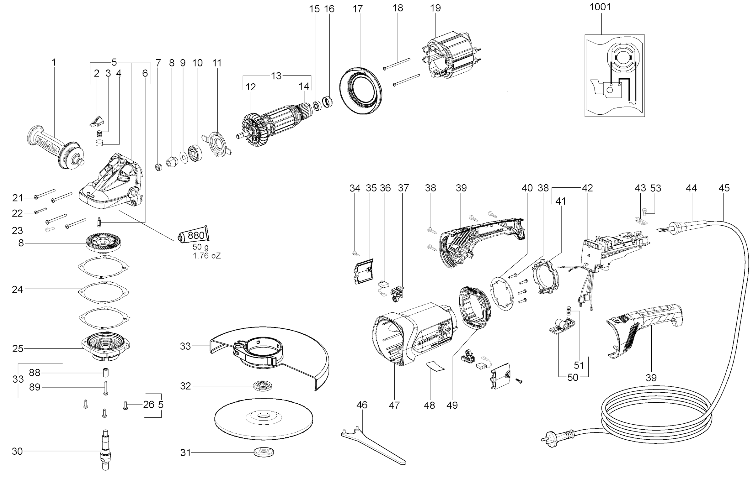 Here you will find all available parts and drawings of the 'Metabo 06459001 ( WX22-230 )'. From here you can order all desired parts directly. Many parts must be ordered from the manufacturer, depending on the brand, this takes one to four weeks. All the information we have is on our website, we cannot advise you on what you need, for that you will need to return the machine for repair. Please note the following when ordering: