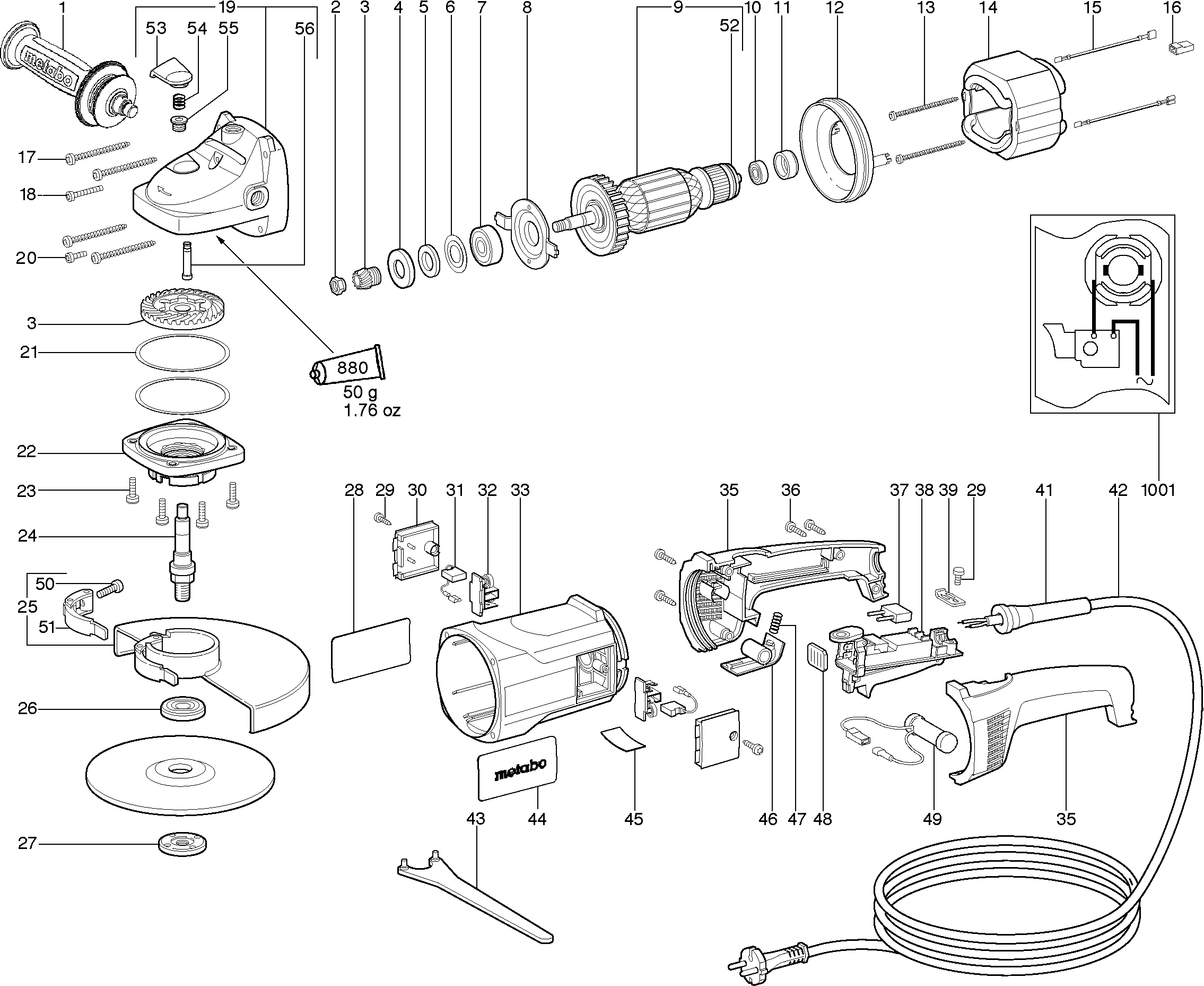Here you will find all available parts and drawings of the 'Metabo 06416260 ( WX23-230 )'. From here you can order all desired parts directly. Many parts must be ordered from the manufacturer, depending on the brand, this takes one to four weeks. All the information we have is on our website, we cannot advise you on what you need, for that you will need to return the machine for repair. Please note the following when ordering: