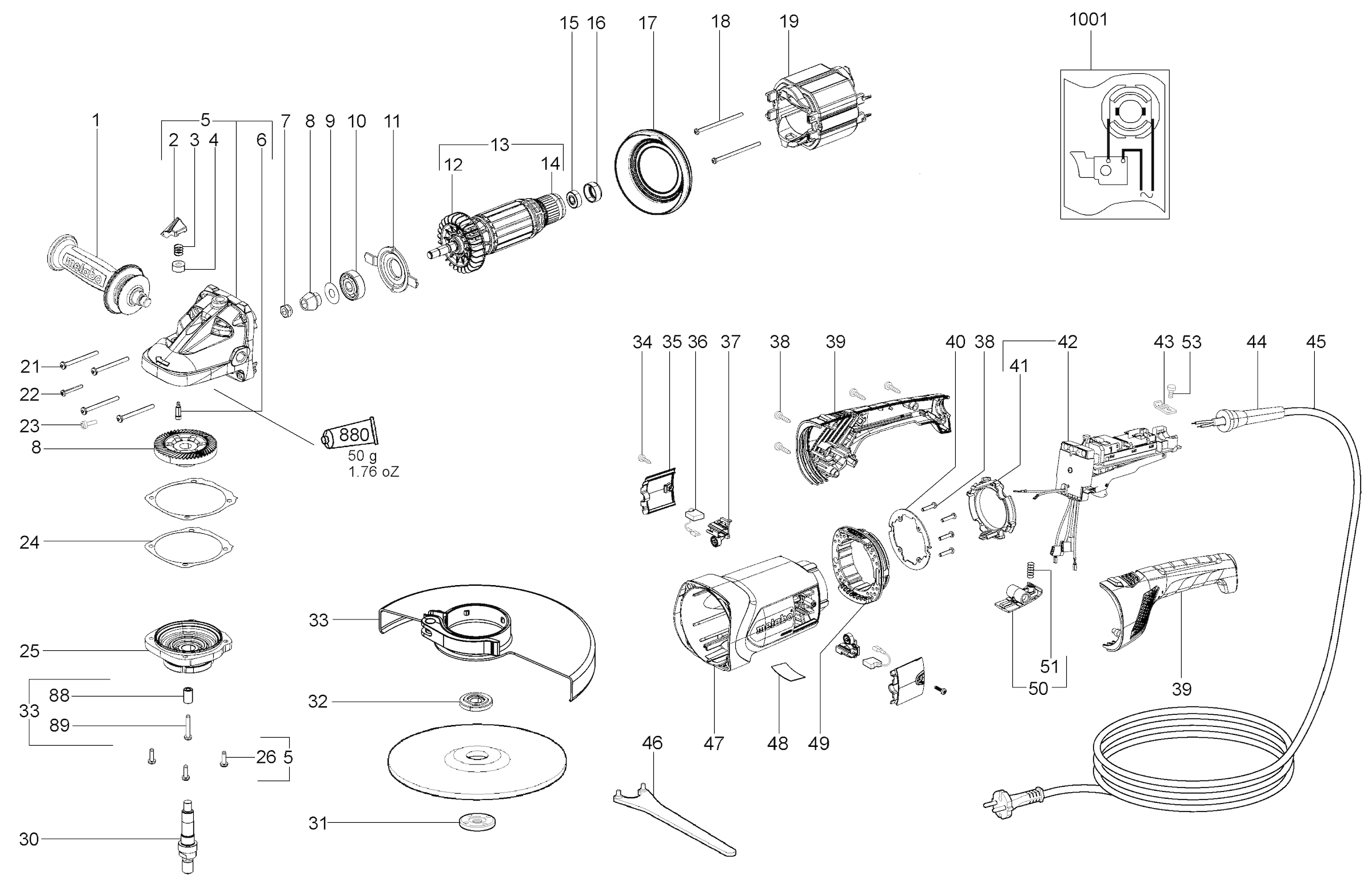 Here you will find all available parts and drawings of the 'Metabo 06449000 ( WX24-230 )'. From here you can order all desired parts directly. Many parts must be ordered from the manufacturer, depending on the brand, this takes one to four weeks. All the information we have is on our website, we cannot advise you on what you need, for that you will need to return the machine for repair. Please note the following when ordering: