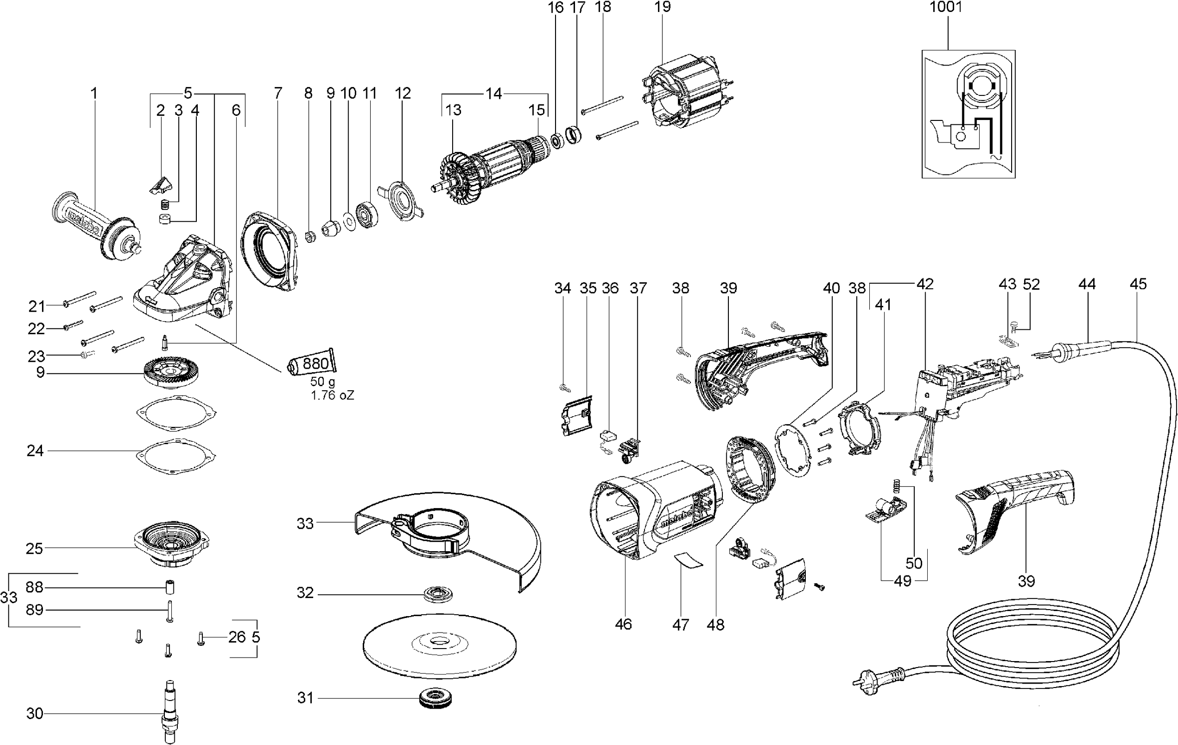 Here you will find all available parts and drawings of the 'Metabo 06454000 ( WX26-230QUICK )'. From here you can order all desired parts directly. Many parts must be ordered from the manufacturer, depending on the brand, this takes one to four weeks. All the information we have is on our website, we cannot advise you on what you need, for that you will need to return the machine for repair. Please note the following when ordering: