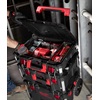 Gefabriceerd van stootvaste polymeer voor langere levensduur. IP65 afdichting houdt regen en werkplaatsvuil tegen. Voorzien van metalen versterkte hoeken en vergrendeling. Deze Milwaukee Packout set bestaat uit : 1X Basis Trolley koffer met wielen (4932464078) 1X Grote koffer maat 2 56x41x29 (4932464079) 1X Kleine koffer maat 3 56x41x17 (932464079)