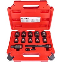 Slagdoppenset bestaande uit doppen 10mm, 12mm, 13mm, 14mm, 17mm, 19mm, 21mm, 22mm en 24mm. Her verlengstuk is 150mm. Inbegrepen is ook een adapter voor de slagschroevendraaier of accuboormachine.