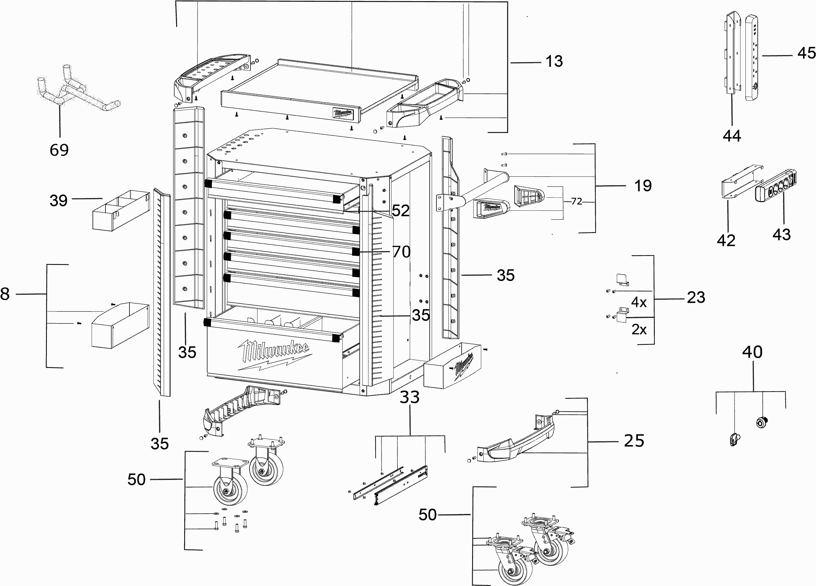 Spare parts list of model Milwaukee 4000483791 ( 30INCHSTEELROLLINGCABINET )