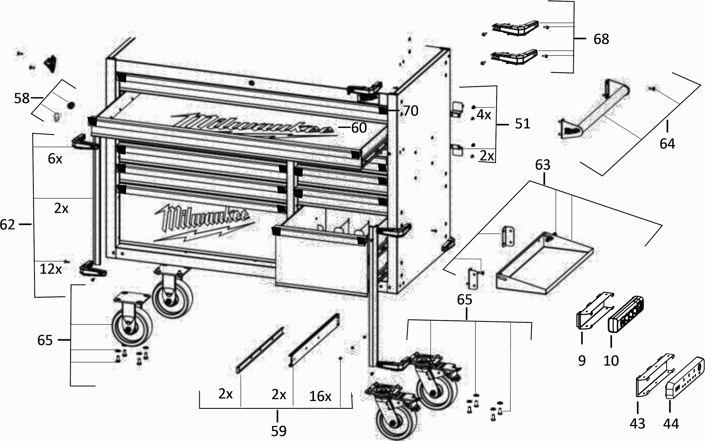 Spare parts list of model Milwaukee 4000483761 ( 46INCHSTEELCABINET )