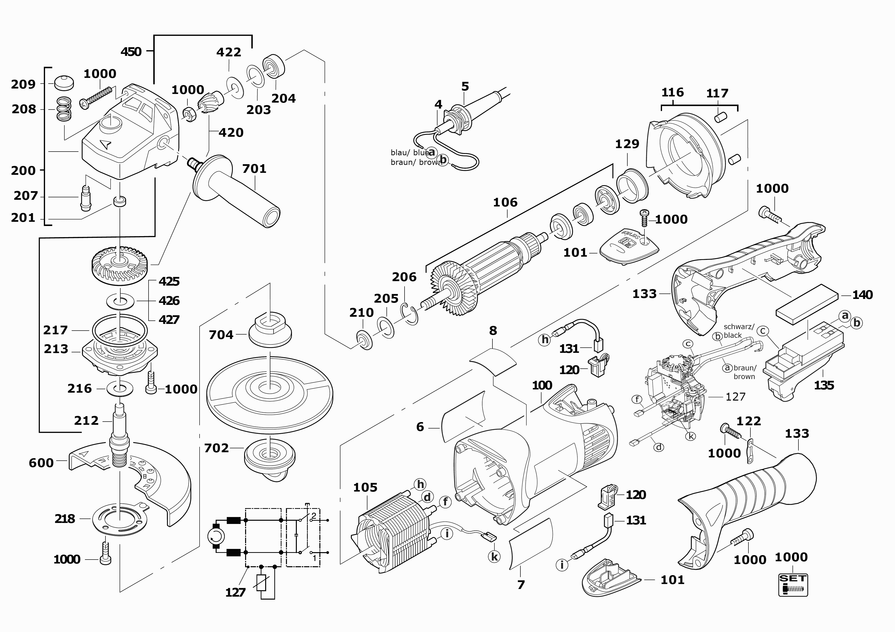 Here you will find all available parts and drawings of the 'Milwaukee 4000463864 ( AG16-125INOX )'. From here you can order all desired parts directly. Many parts must be ordered from the manufacturer, depending on the brand, this takes one to four weeks. All the information we have is on our website, we cannot advise you on what you need, for that you will need to return the machine for repair. Please note the following when ordering: