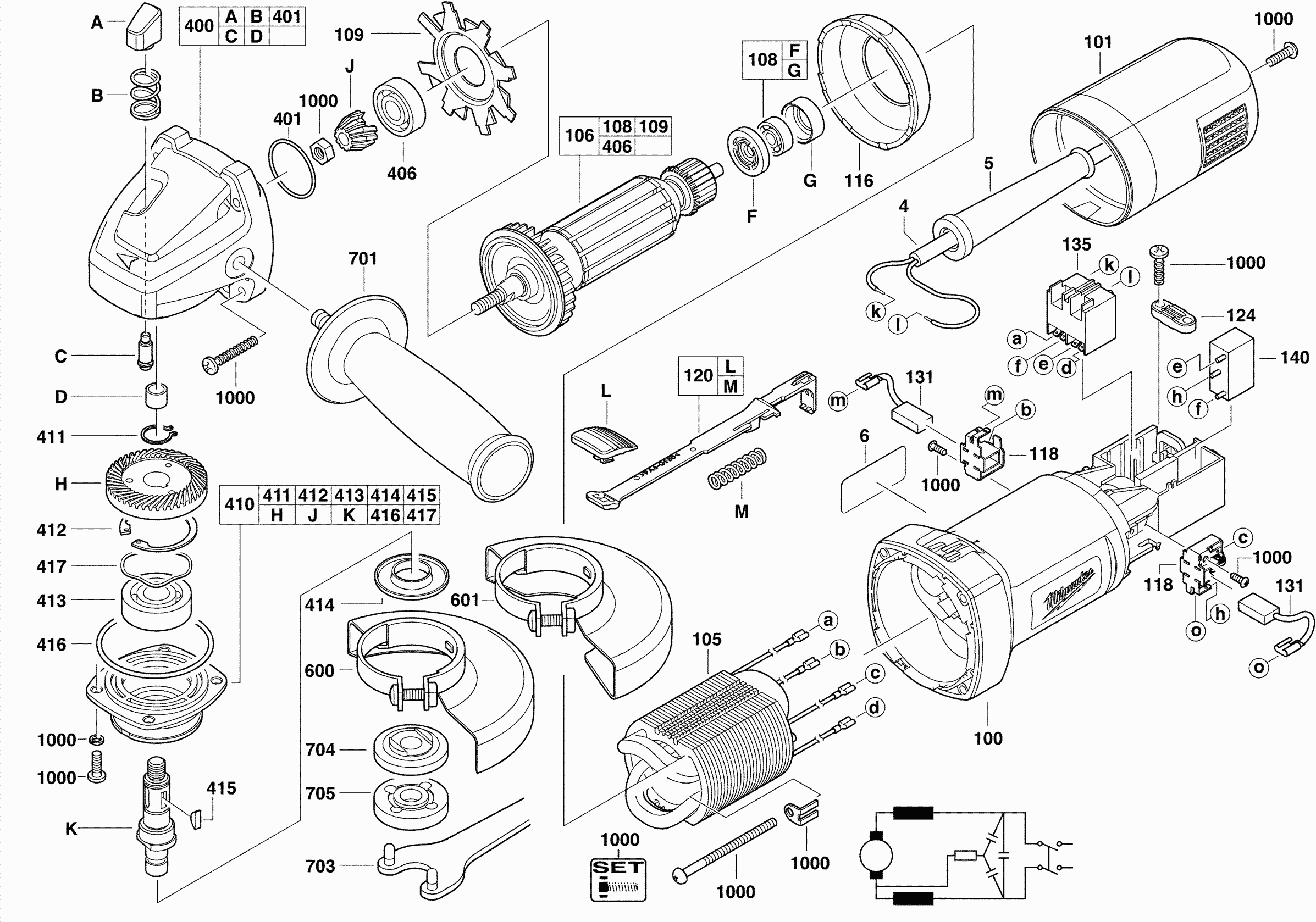 Here you will find all available parts and drawings of the 'Milwaukee 4000431121 ( AG750-115 )'. From here you can order all desired parts directly. Many parts must be ordered from the manufacturer, depending on the brand, this takes one to four weeks. All the information we have is on our website, we cannot advise you on what you need, for that you will need to return the machine for repair. Please note the following when ordering: