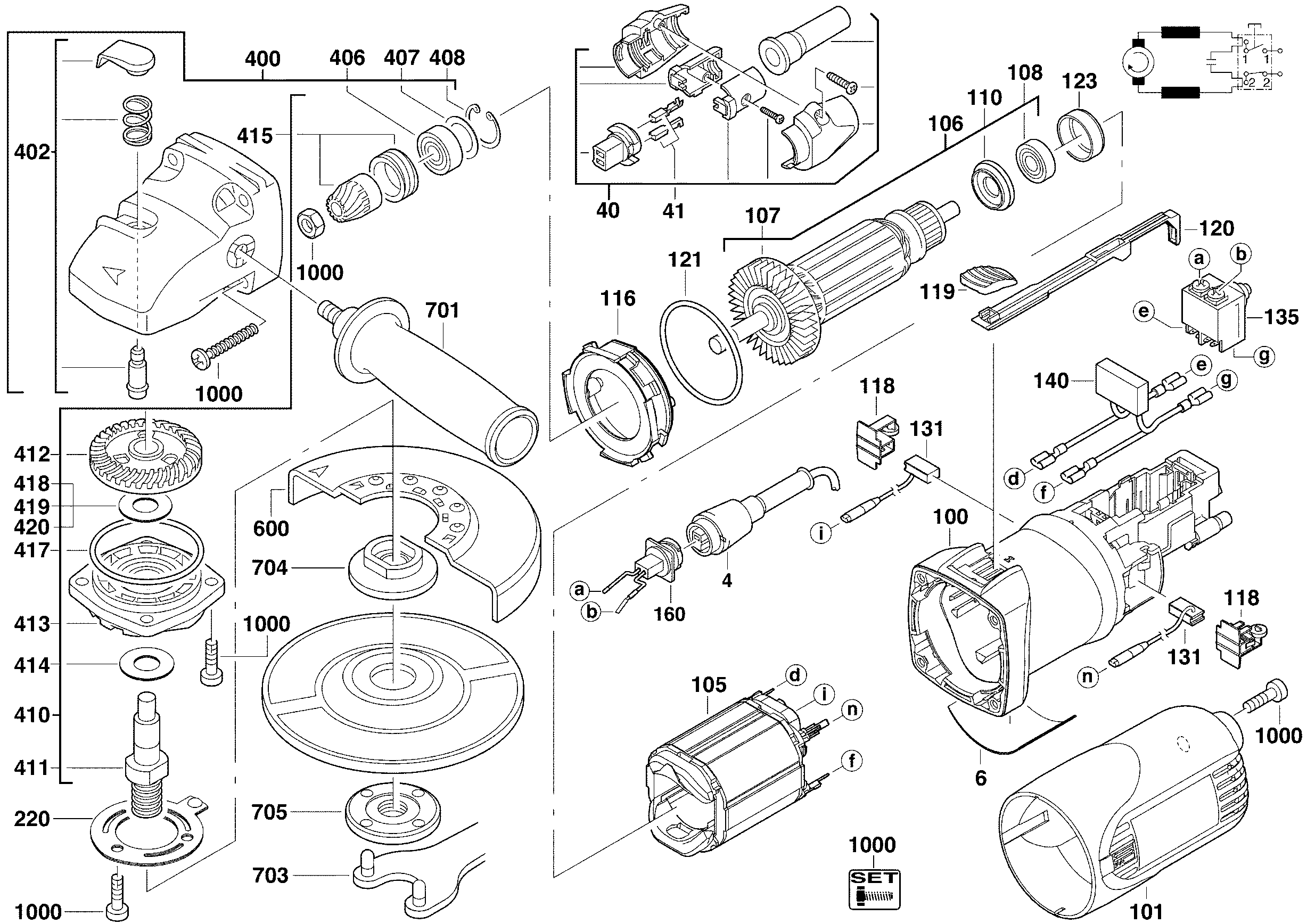 Here you will find all available parts and drawings of the 'Milwaukee 4000403236 ( AG8-125Q )'. From here you can order all desired parts directly. Many parts must be ordered from the manufacturer, depending on the brand, this takes one to four weeks. All the information we have is on our website, we cannot advise you on what you need, for that you will need to return the machine for repair. Please note the following when ordering: