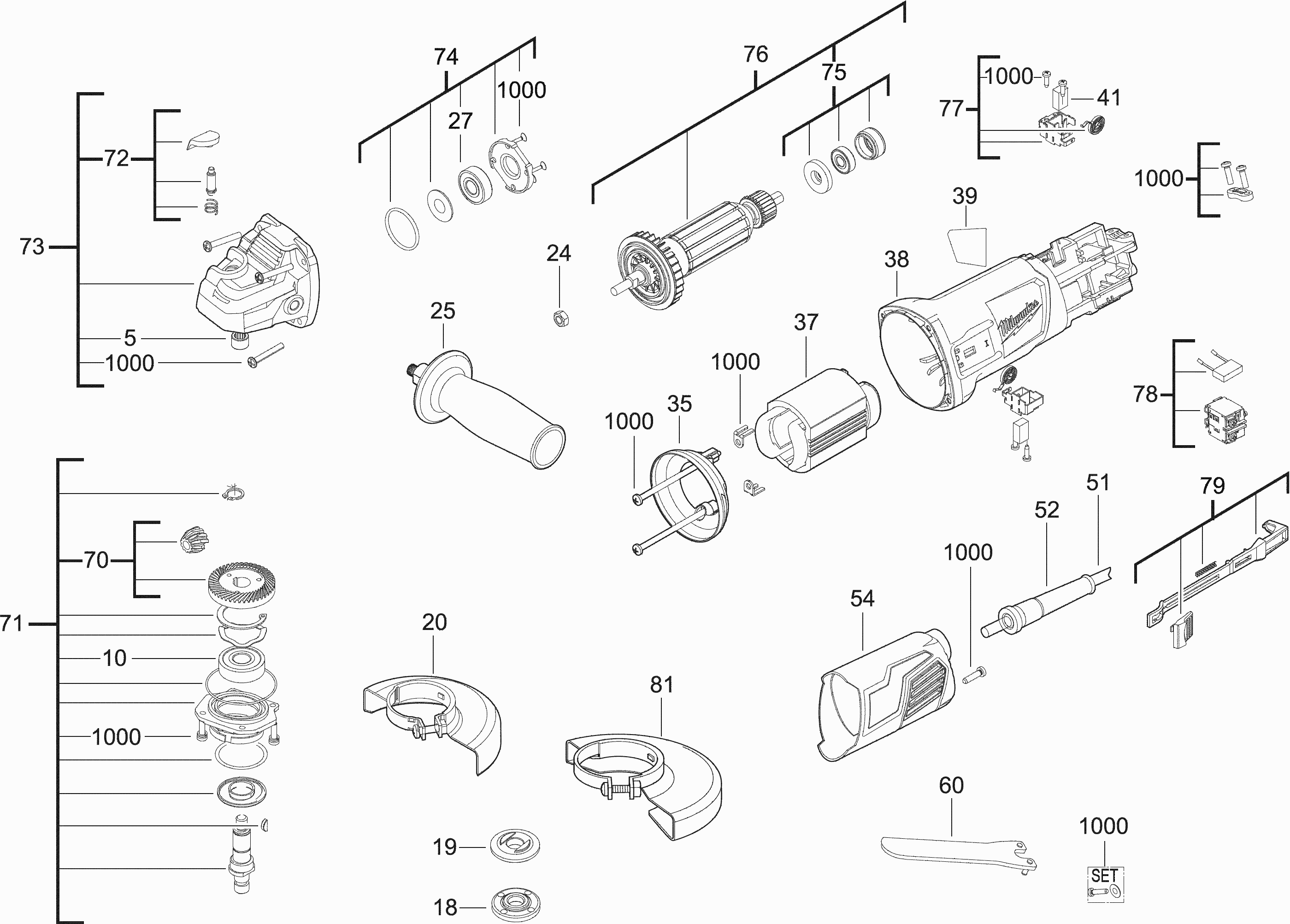 Here you will find all available parts and drawings of the 'Milwaukee 4000452850 ( AG800-100ME2 )'. From here you can order all desired parts directly. Many parts must be ordered from the manufacturer, depending on the brand, this takes one to four weeks. All the information we have is on our website, we cannot advise you on what you need, for that you will need to return the machine for repair. Please note the following when ordering: