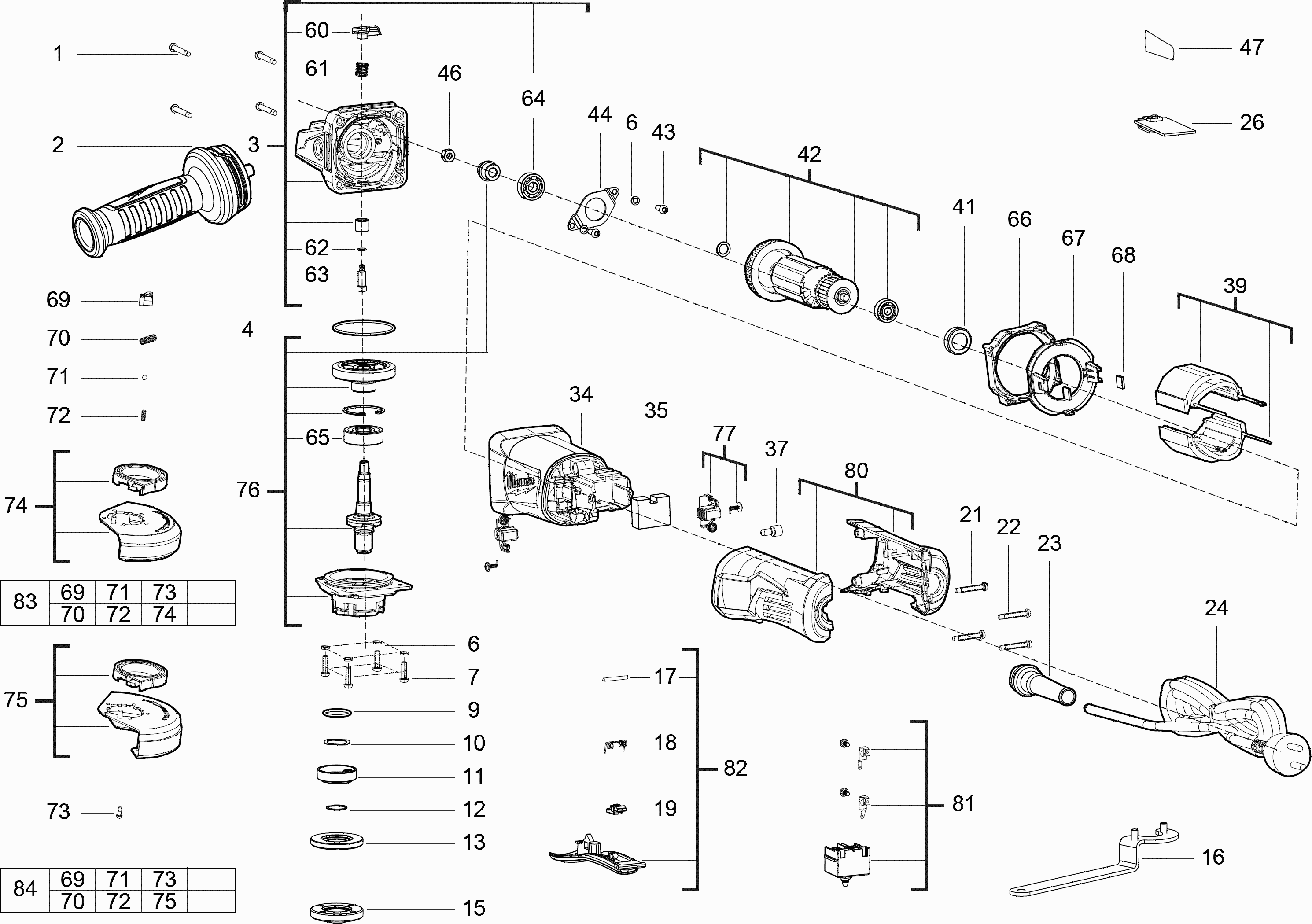 Here you will find all available parts and drawings of the 'Milwaukee 4000458020 ( AGV13-125XSPDEIN2 )'. From here you can order all desired parts directly. Many parts must be ordered from the manufacturer, depending on the brand, this takes one to four weeks. All the information we have is on our website, we cannot advise you on what you need, for that you will need to return the machine for repair. Please note the following when ordering: