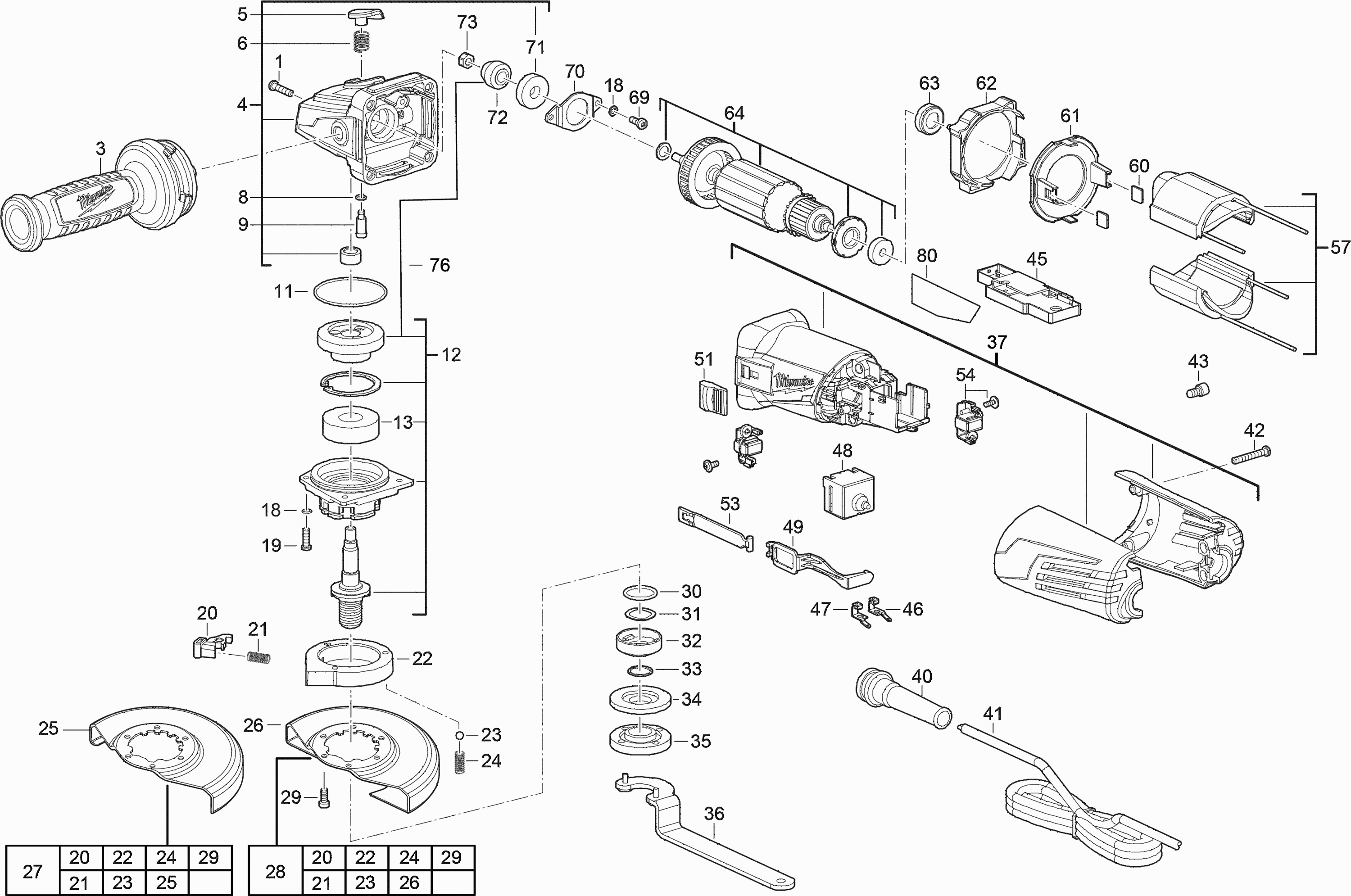 Spare parts list of model Milwaukee 4000458248 ( AGV15-150XCDMS )