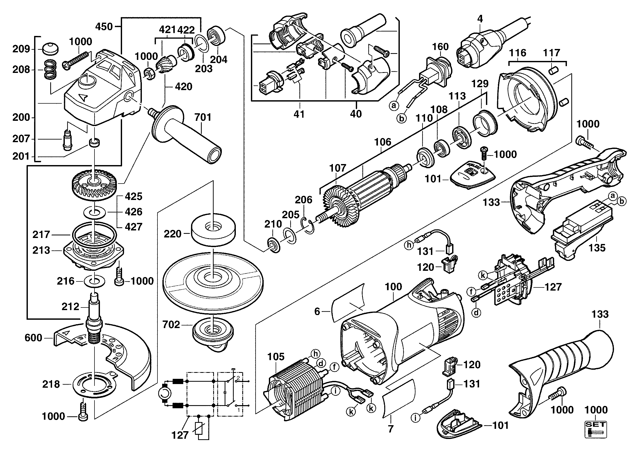 Here you will find all available parts and drawings of the 'Milwaukee 4000381466 ( AGV16-125QXC )'. From here you can order all desired parts directly. Many parts must be ordered from the manufacturer, depending on the brand, this takes one to four weeks. All the information we have is on our website, we cannot advise you on what you need, for that you will need to return the machine for repair. Please note the following when ordering: