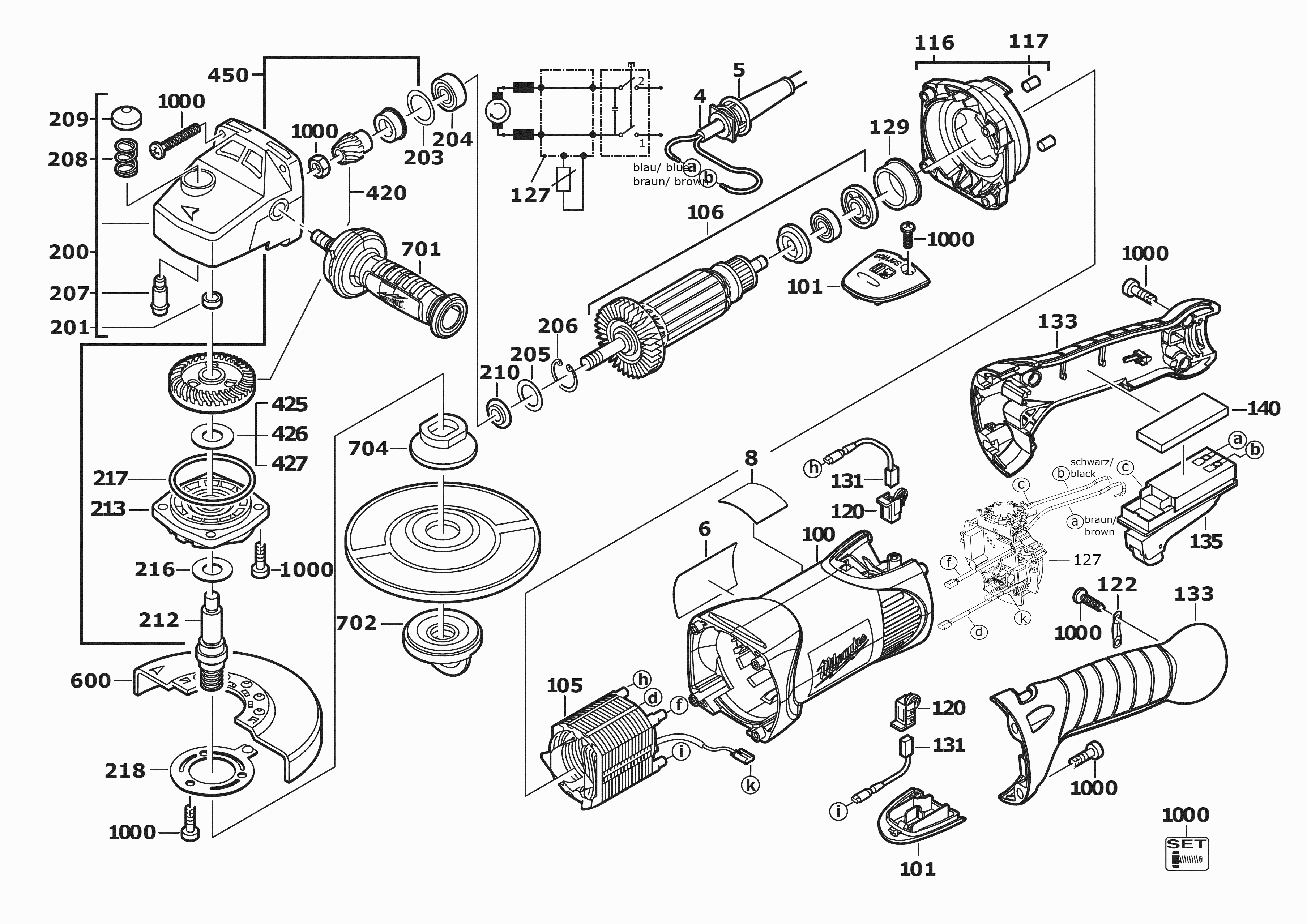 Here you will find all available parts and drawings of the 'Milwaukee 4000463797 ( AGV17-125XEDMSIN2 )'. From here you can order all desired parts directly. Many parts must be ordered from the manufacturer, depending on the brand, this takes one to four weeks. All the information we have is on our website, we cannot advise you on what you need, for that you will need to return the machine for repair. Please note the following when ordering:
