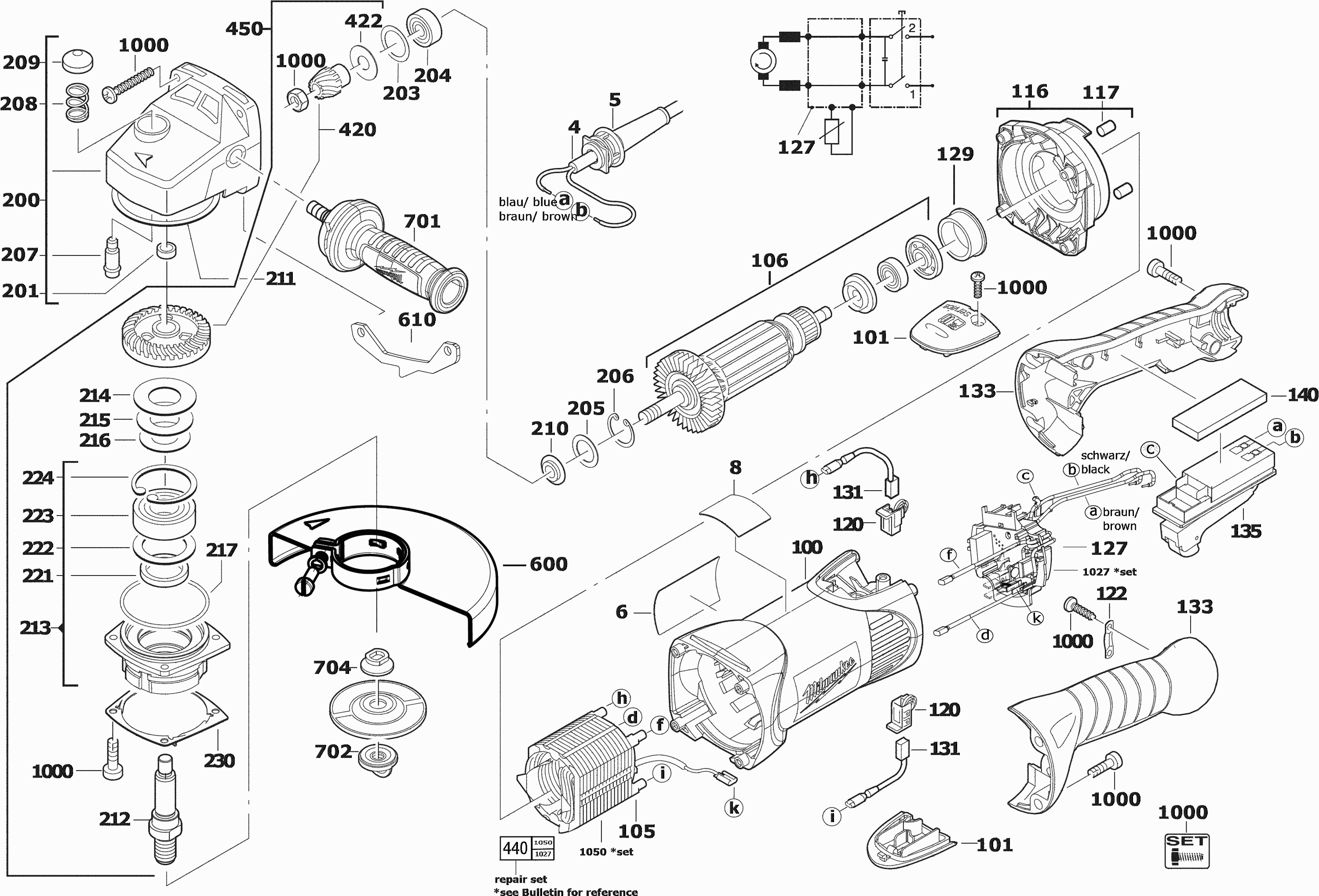 Here you will find all available parts and drawings of the 'Milwaukee 4000455401 ( AGV17-180XCDMSIN2 )'. From here you can order all desired parts directly. Many parts must be ordered from the manufacturer, depending on the brand, this takes one to four weeks. All the information we have is on our website, we cannot advise you on what you need, for that you will need to return the machine for repair. Please note the following when ordering: