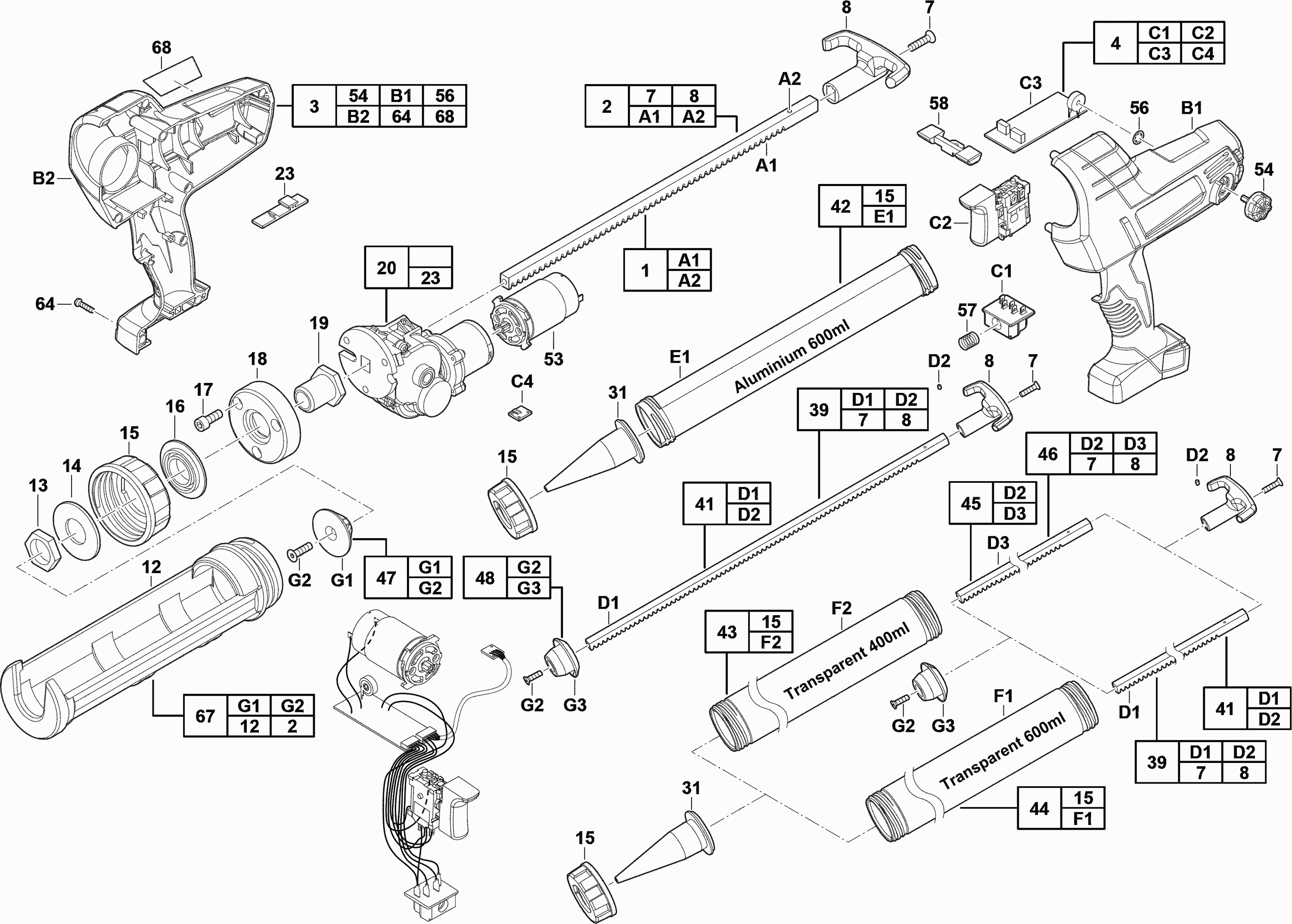 Here you will find all available parts and drawings of the 'Milwaukee 4000427325 ( C18PCG/310C-21B )'. From here you can order all desired parts directly. Many parts must be ordered from the manufacturer, depending on the brand, this takes one to four weeks. All the information we have is on our website, we cannot advise you on what you need, for that you will need to return the machine for repair. Please note the following when ordering: