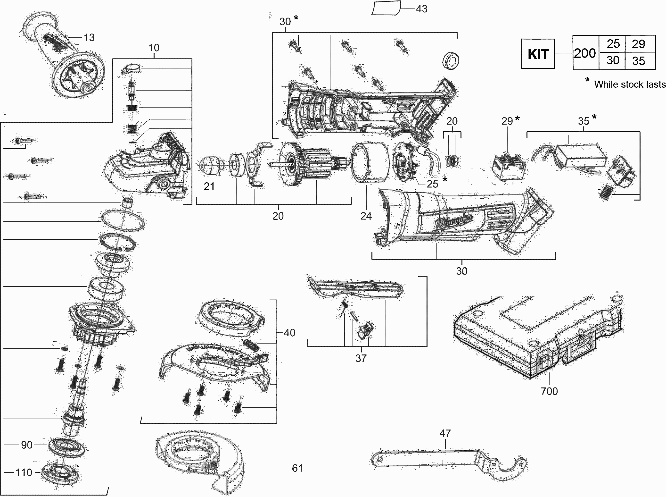 Here you will find all available parts and drawings of the 'Milwaukee 4000448721 ( HD18AG115-0 )'. From here you can order all desired parts directly. Many parts must be ordered from the manufacturer, depending on the brand, this takes one to four weeks. All the information we have is on our website, we cannot advise you on what you need, for that you will need to return the machine for repair. Please note the following when ordering: