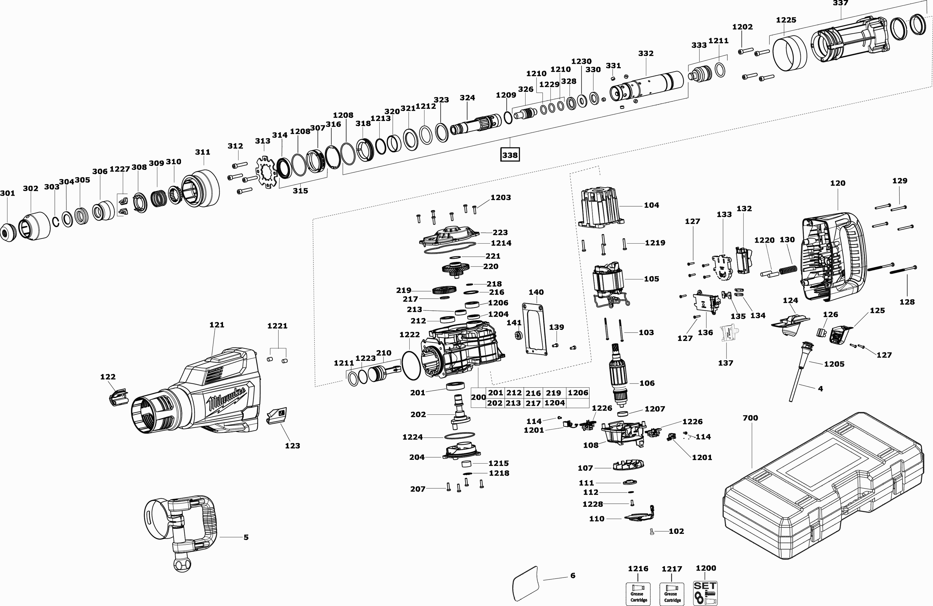 Technical drawing of model Milwaukee 4000463086 ( K1000SGB1 )
