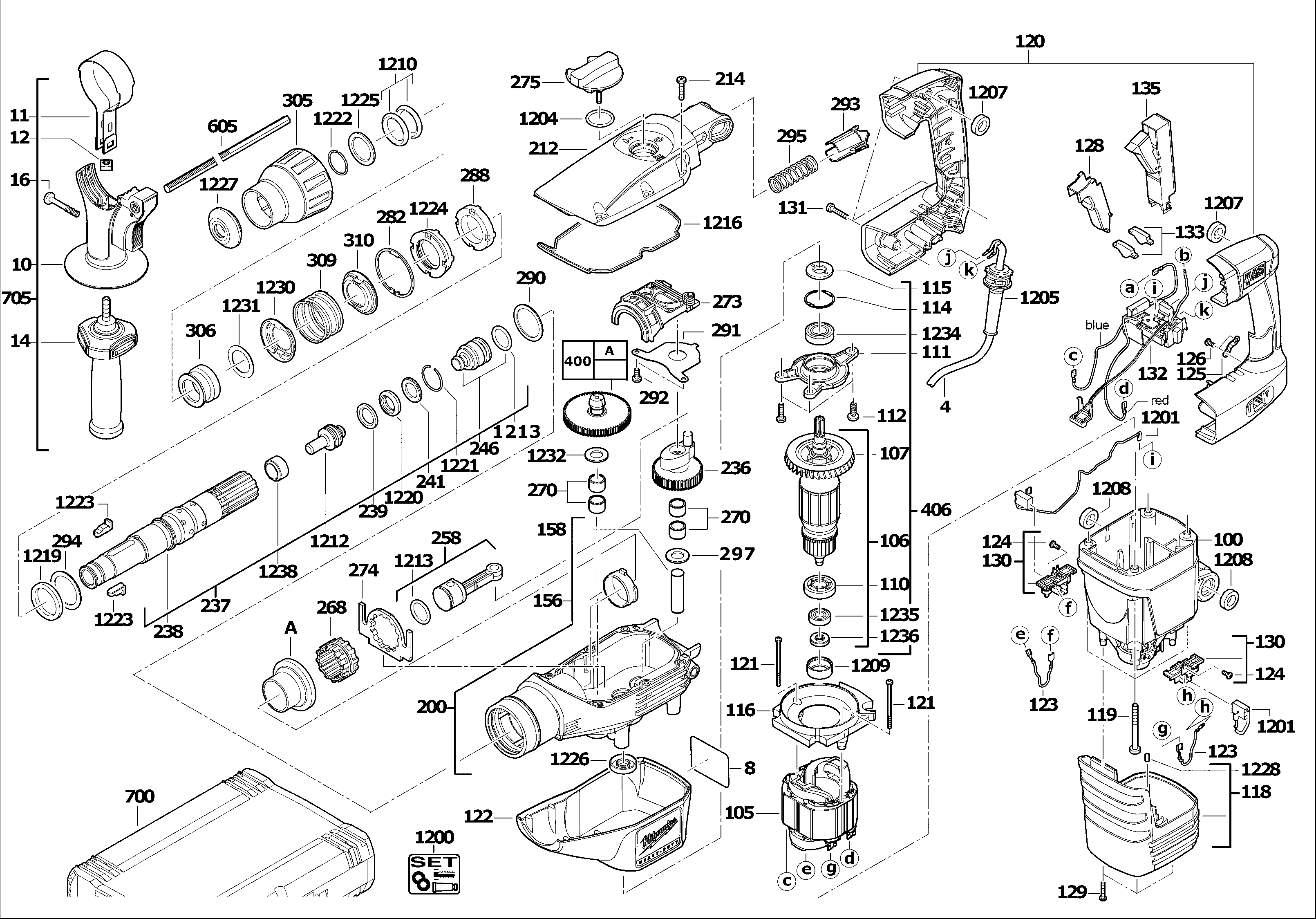 Here you will find all available parts and drawings of the 'Milwaukee 4000432451 ( K545S )'. From here you can order all desired parts directly. Many parts must be ordered from the manufacturer, depending on the brand, this takes one to four weeks. All the information we have is on our website, we cannot advise you on what you need, for that you will need to return the machine for repair. Please note the following when ordering: