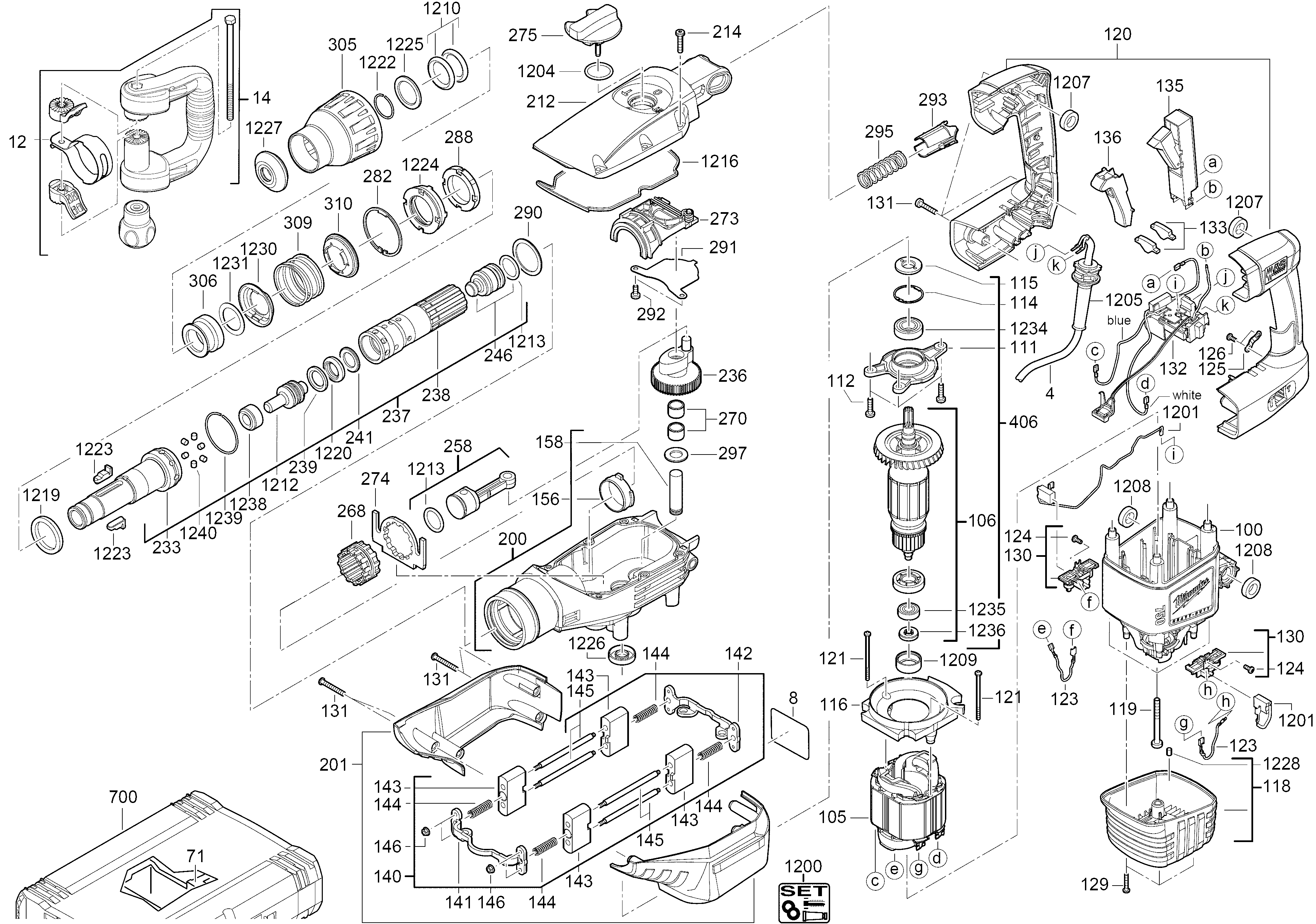 Here you will find all available parts and drawings of the 'Milwaukee 4000455856 ( K700S )'. From here you can order all desired parts directly. Many parts must be ordered from the manufacturer, depending on the brand, this takes one to four weeks. All the information we have is on our website, we cannot advise you on what you need, for that you will need to return the machine for repair. Please note the following when ordering: