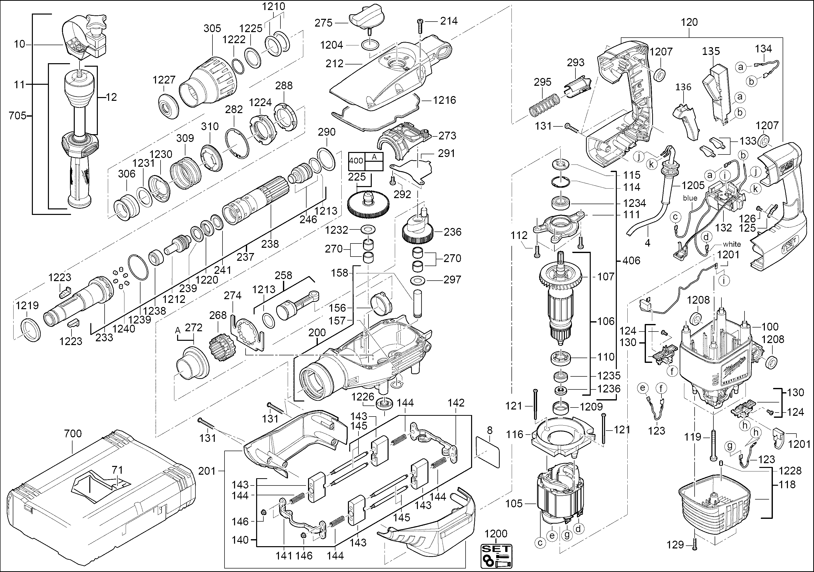 Here you will find all available parts and drawings of the 'Milwaukee 4000442778 ( K750S )'. From here you can order all desired parts directly. Many parts must be ordered from the manufacturer, depending on the brand, this takes one to four weeks. All the information we have is on our website, we cannot advise you on what you need, for that you will need to return the machine for repair. Please note the following when ordering: