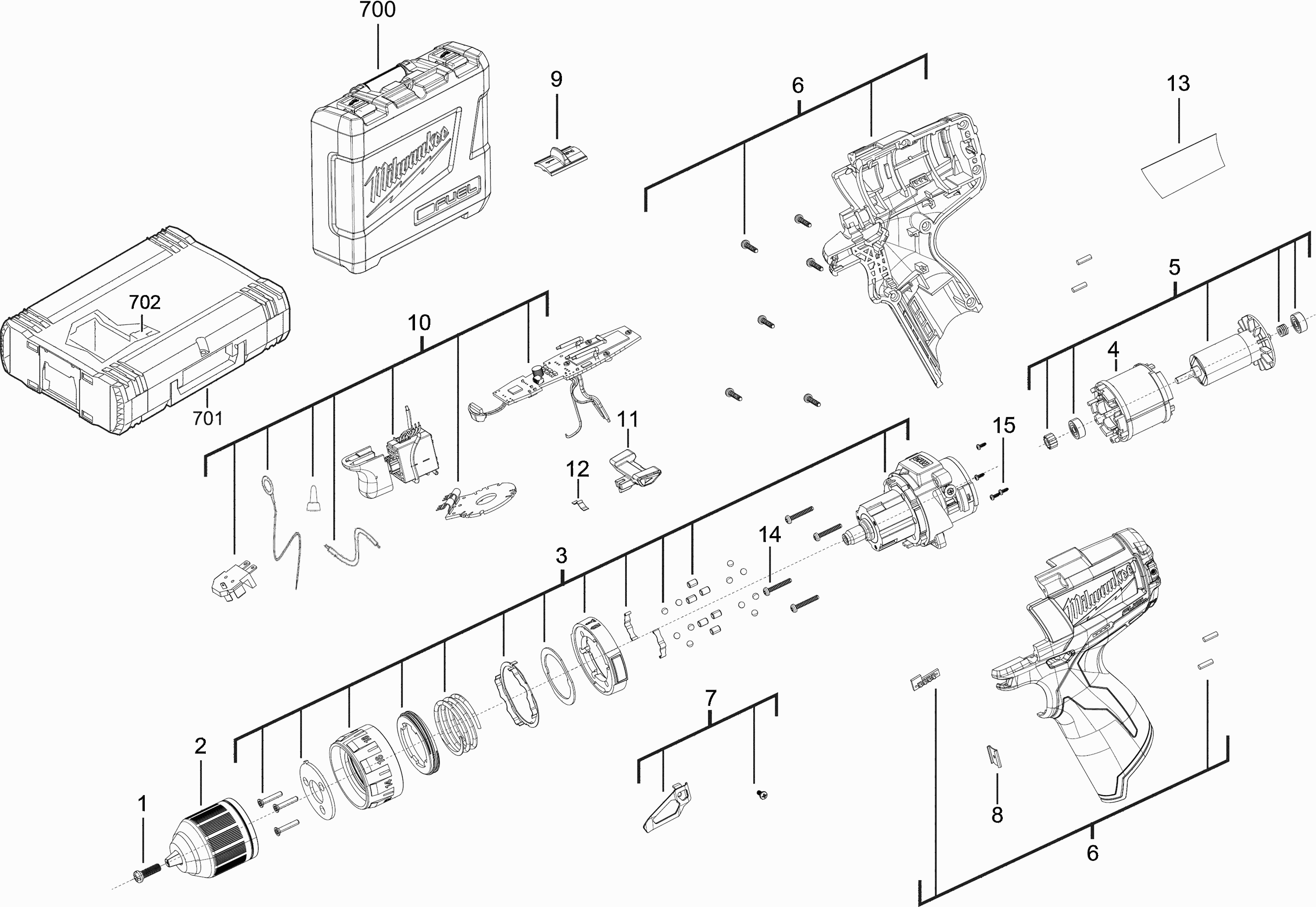 Here you will find all available parts and drawings of the 'Milwaukee 4000448882 ( M12CDD-0 )'. From here you can order all desired parts directly. Many parts must be ordered from the manufacturer, depending on the brand, this takes one to four weeks. All the information we have is on our website, we cannot advise you on what you need, for that you will need to return the machine for repair. Please note the following when ordering: