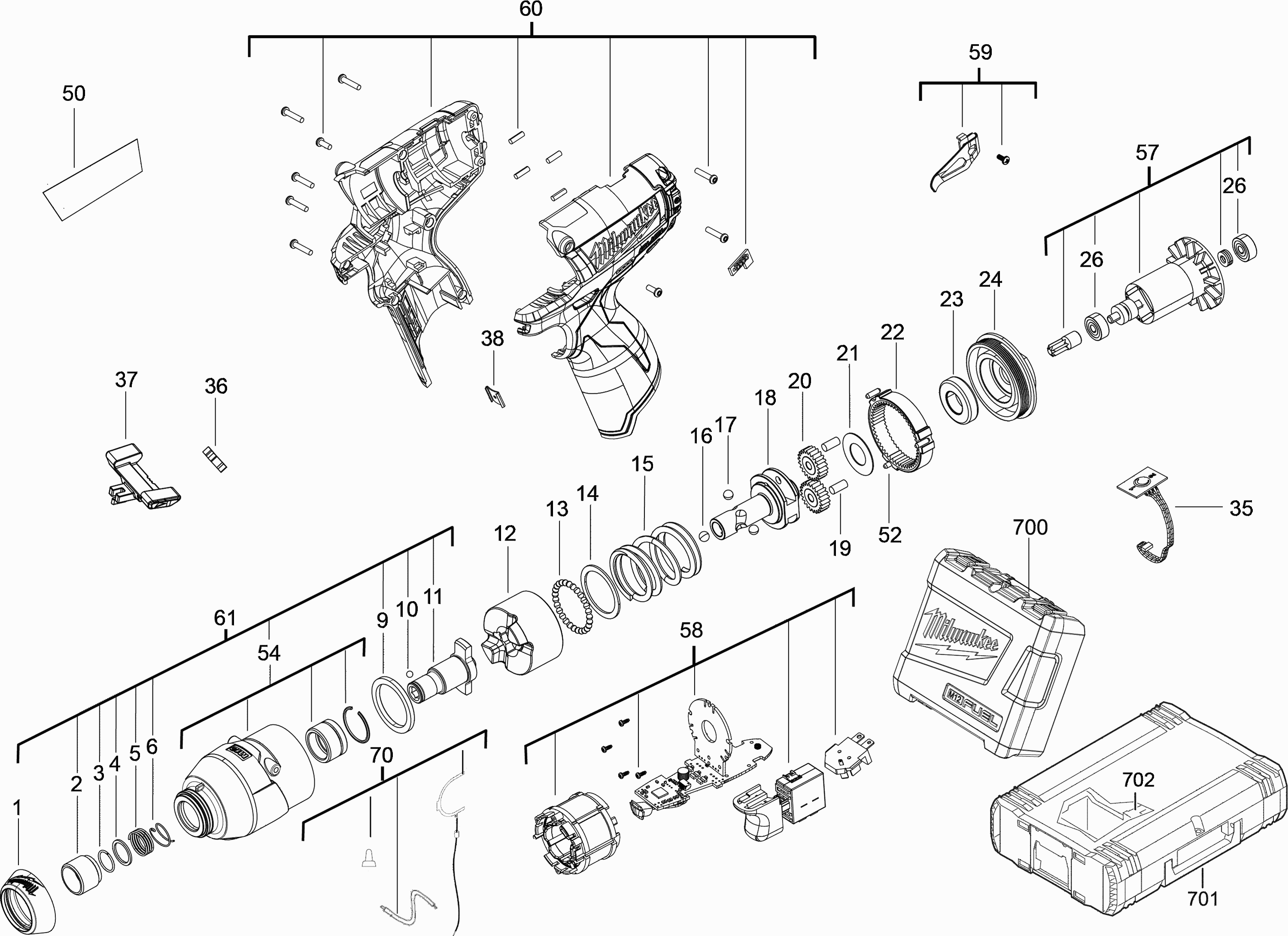 Spare parts list of model Milwaukee 4000448888 ( M12CID-0 )