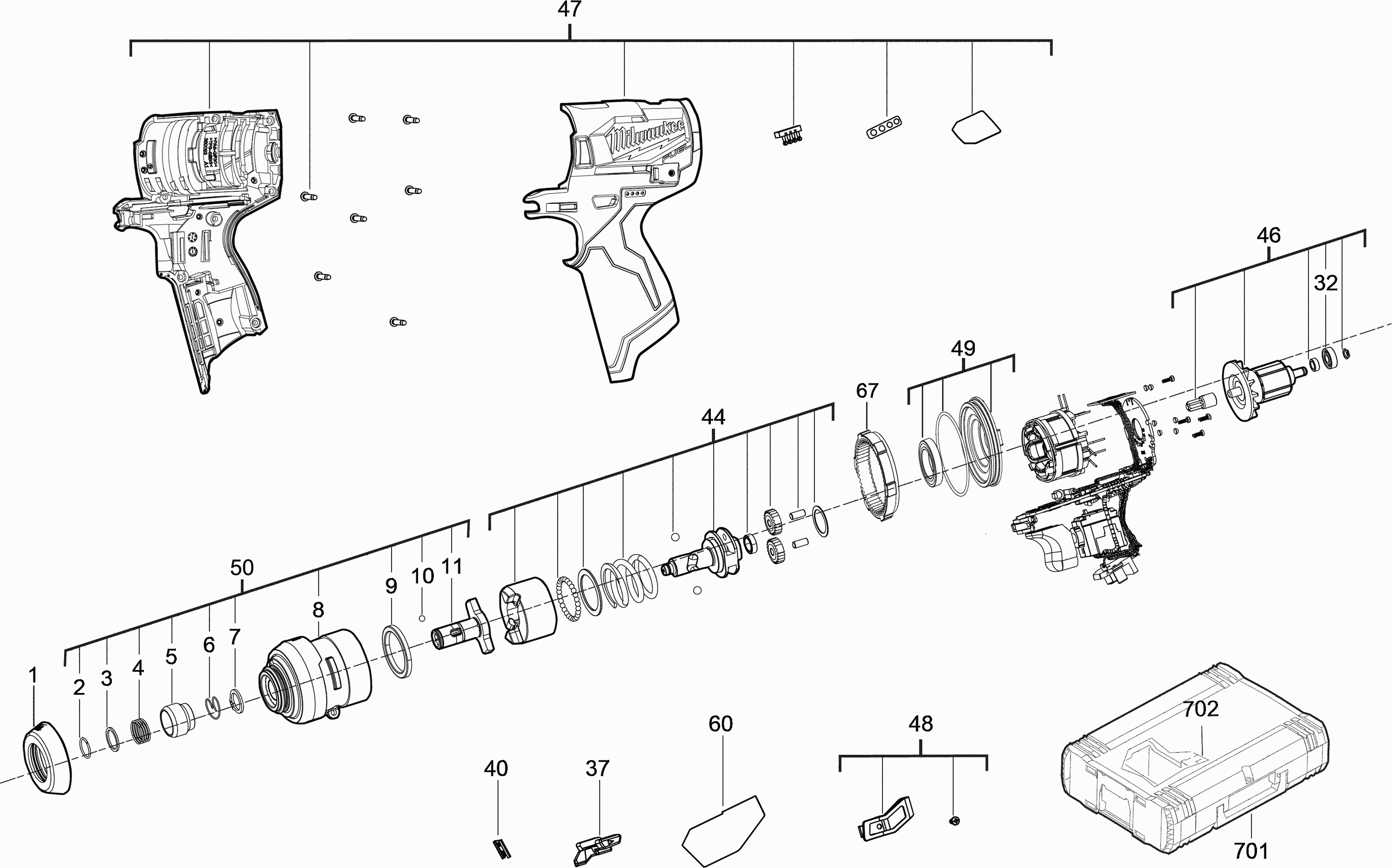 Spare parts list of model Milwaukee 4000474345 ( M12FID-0 )