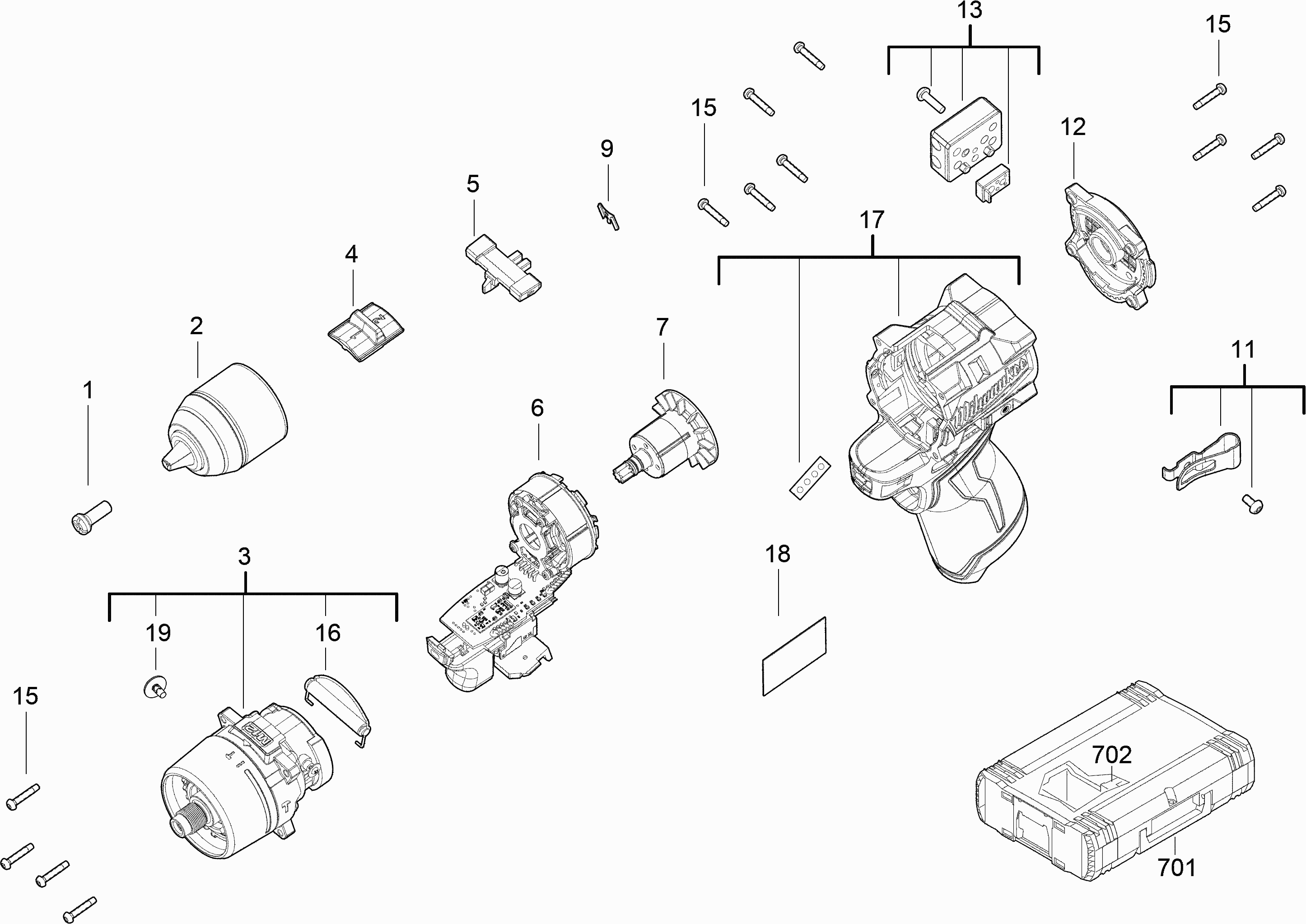 Here you will find all available parts and drawings of the 'Milwaukee 4000481337 ( M12FPD2-0 )'. From here you can order all desired parts directly. Many parts must be ordered from the manufacturer, depending on the brand, this takes one to four weeks. All the information we have is on our website, we cannot advise you on what you need, for that you will need to return the machine for repair. Please note the following when ordering: