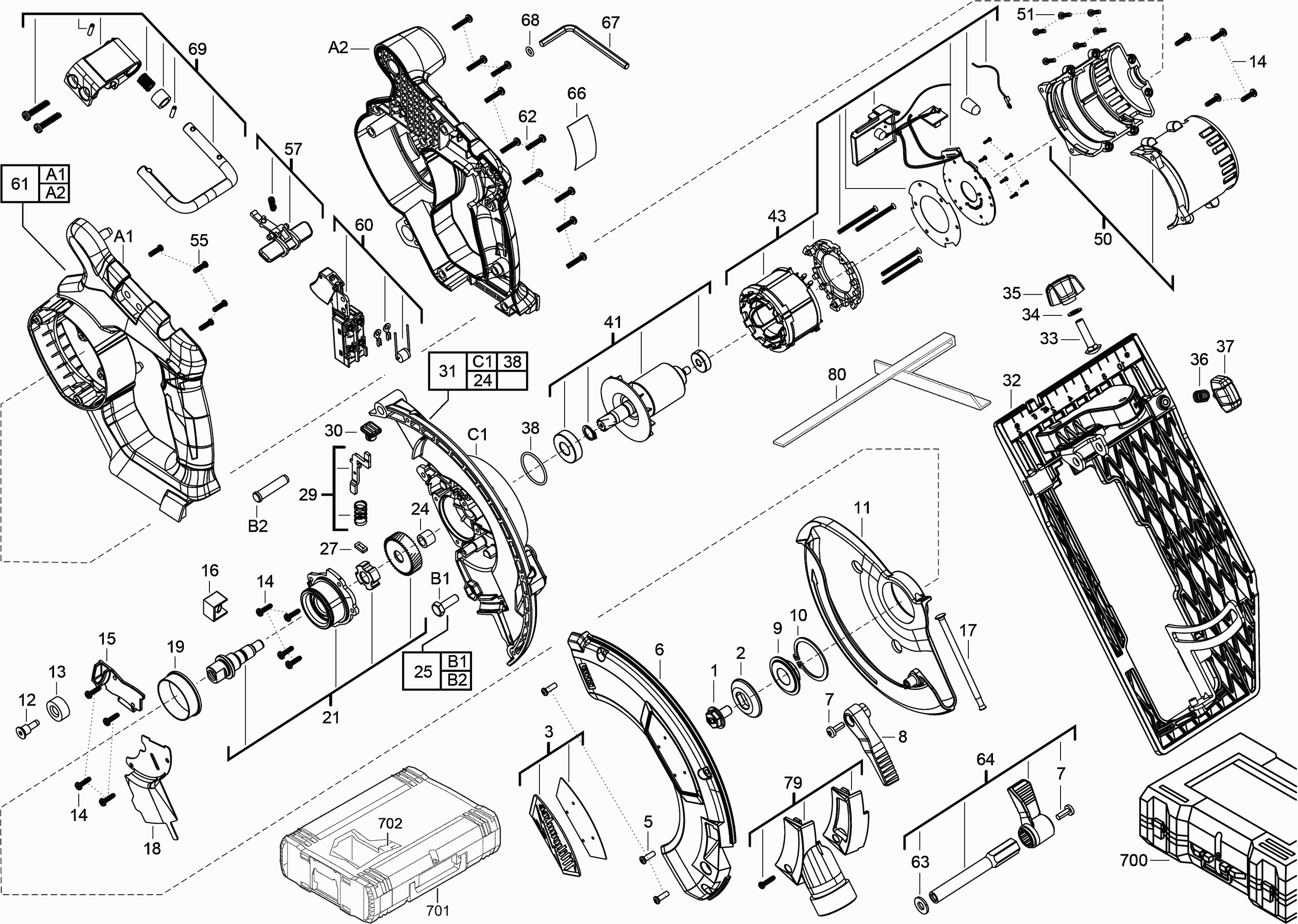 Here you will find all available parts and drawings of the 'Milwaukee 4000447256 ( M18CCS66-0 )'. From here you can order all desired parts directly. Many parts must be ordered from the manufacturer, depending on the brand, this takes one to four weeks. All the information we have is on our website, we cannot advise you on what you need, for that you will need to return the machine for repair. Please note the following when ordering: