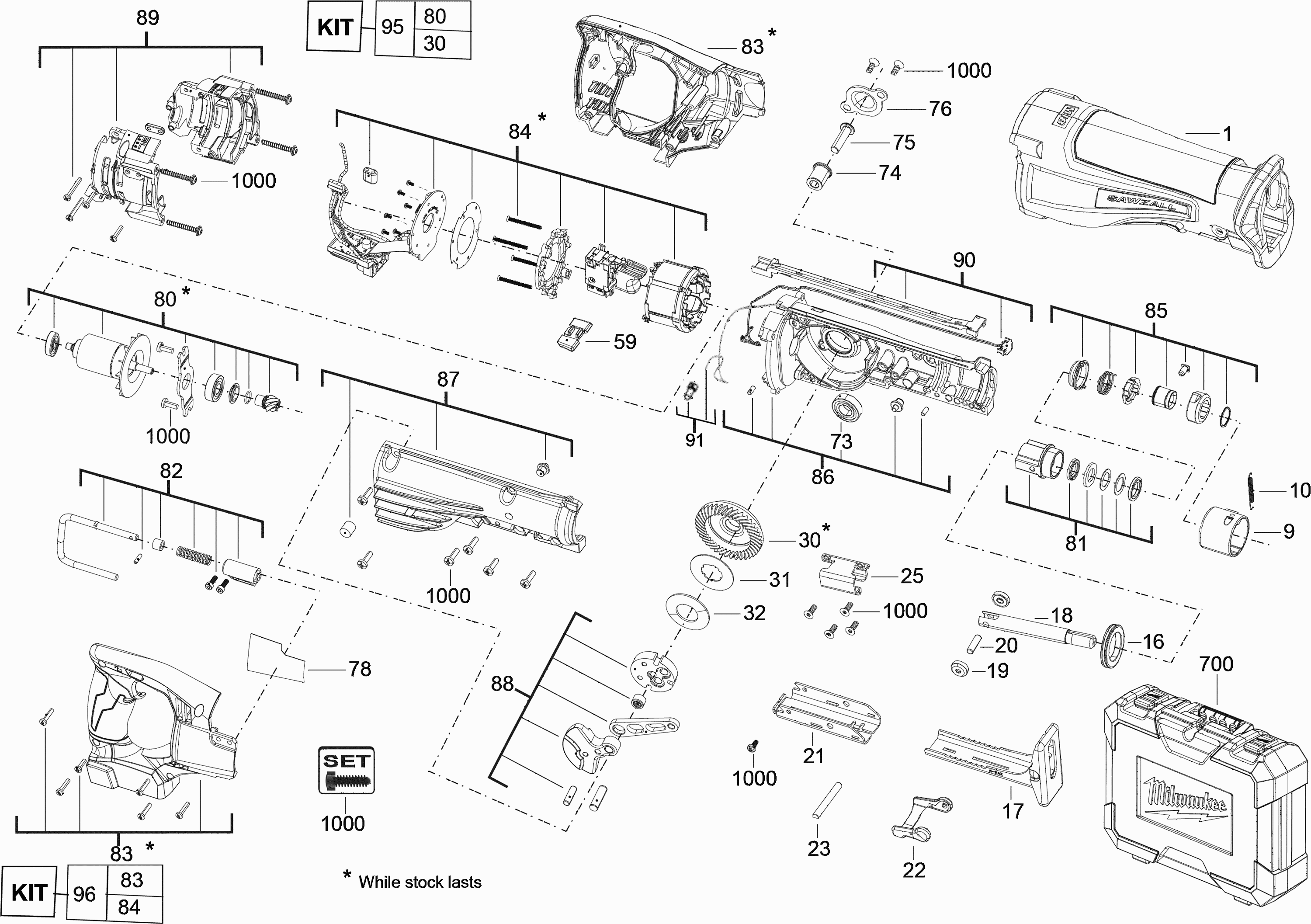 Here you will find all available parts and drawings of the 'Milwaukee 4000448972 ( M18CSX-0 )'. From here you can order all desired parts directly. Many parts must be ordered from the manufacturer, depending on the brand, this takes one to four weeks. All the information we have is on our website, we cannot advise you on what you need, for that you will need to return the machine for repair. Please note the following when ordering: