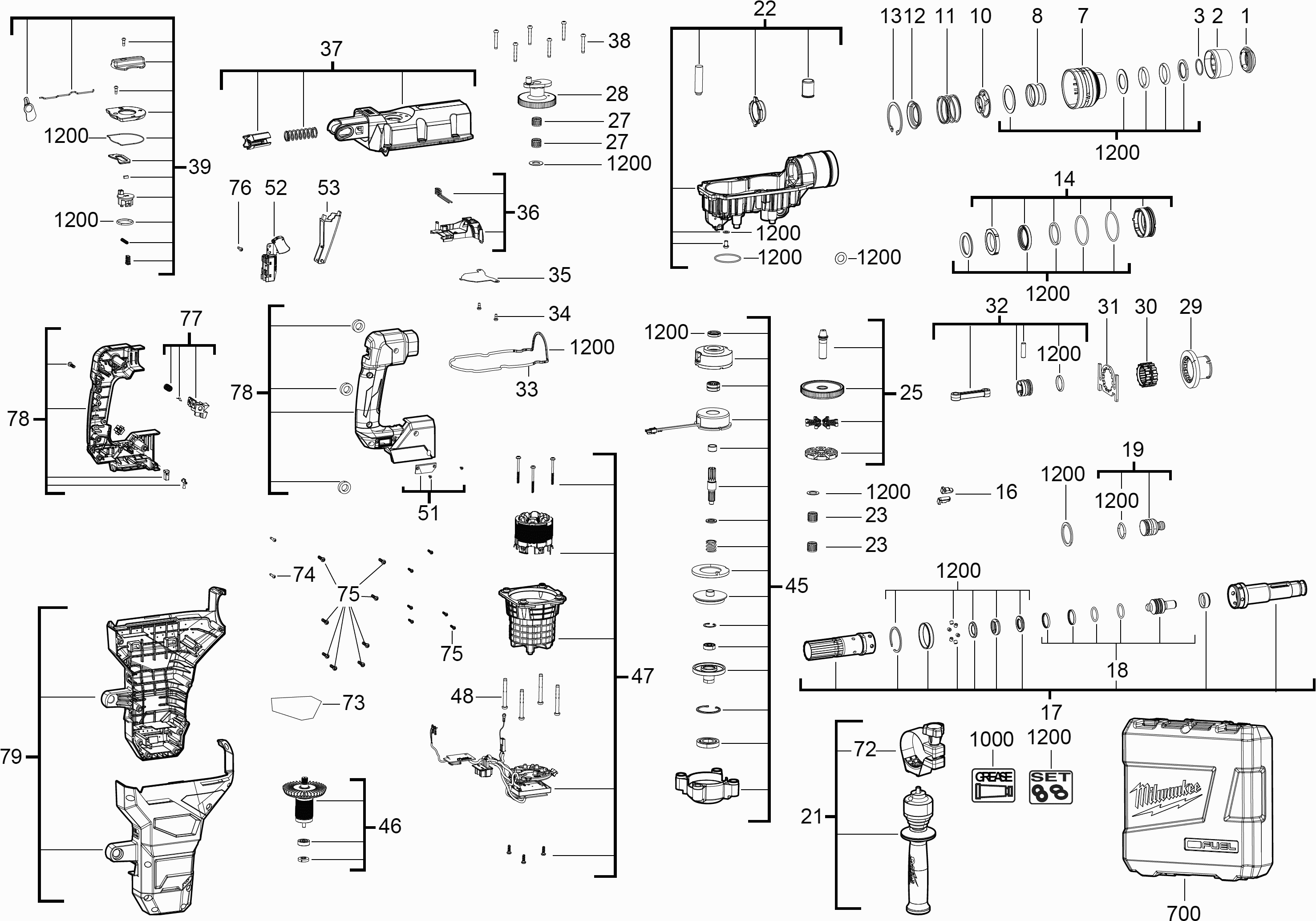 Spare parts list of model Milwaukee 4000469696 ( M18FHM-0C )
