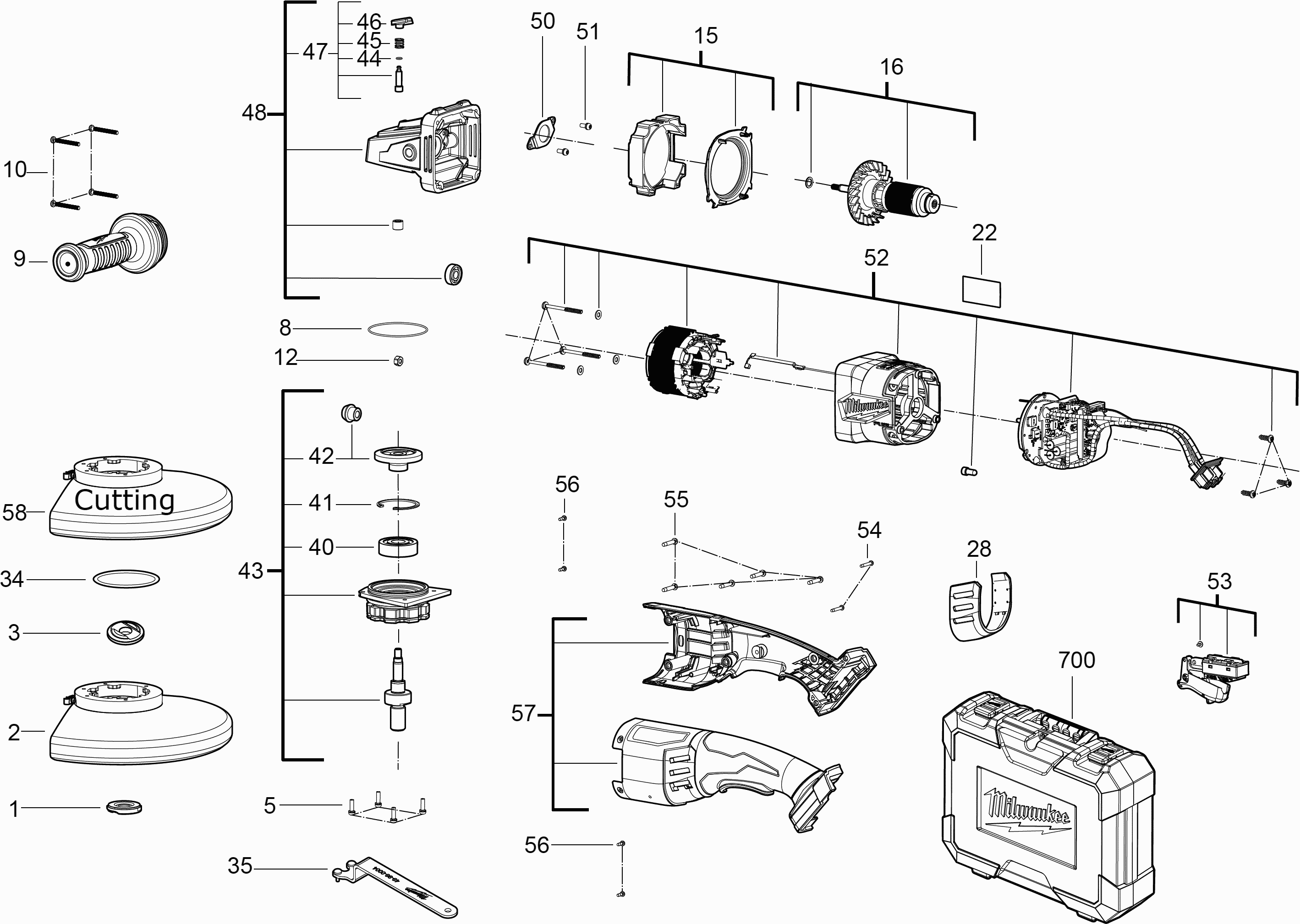 Here you will find all available parts and drawings of the 'Milwaukee 4000467900 ( M18FLAG180XPDB-0 )'. From here you can order all desired parts directly. Many parts must be ordered from the manufacturer, depending on the brand, this takes one to four weeks. All the information we have is on our website, we cannot advise you on what you need, for that you will need to return the machine for repair. Please note the following when ordering: