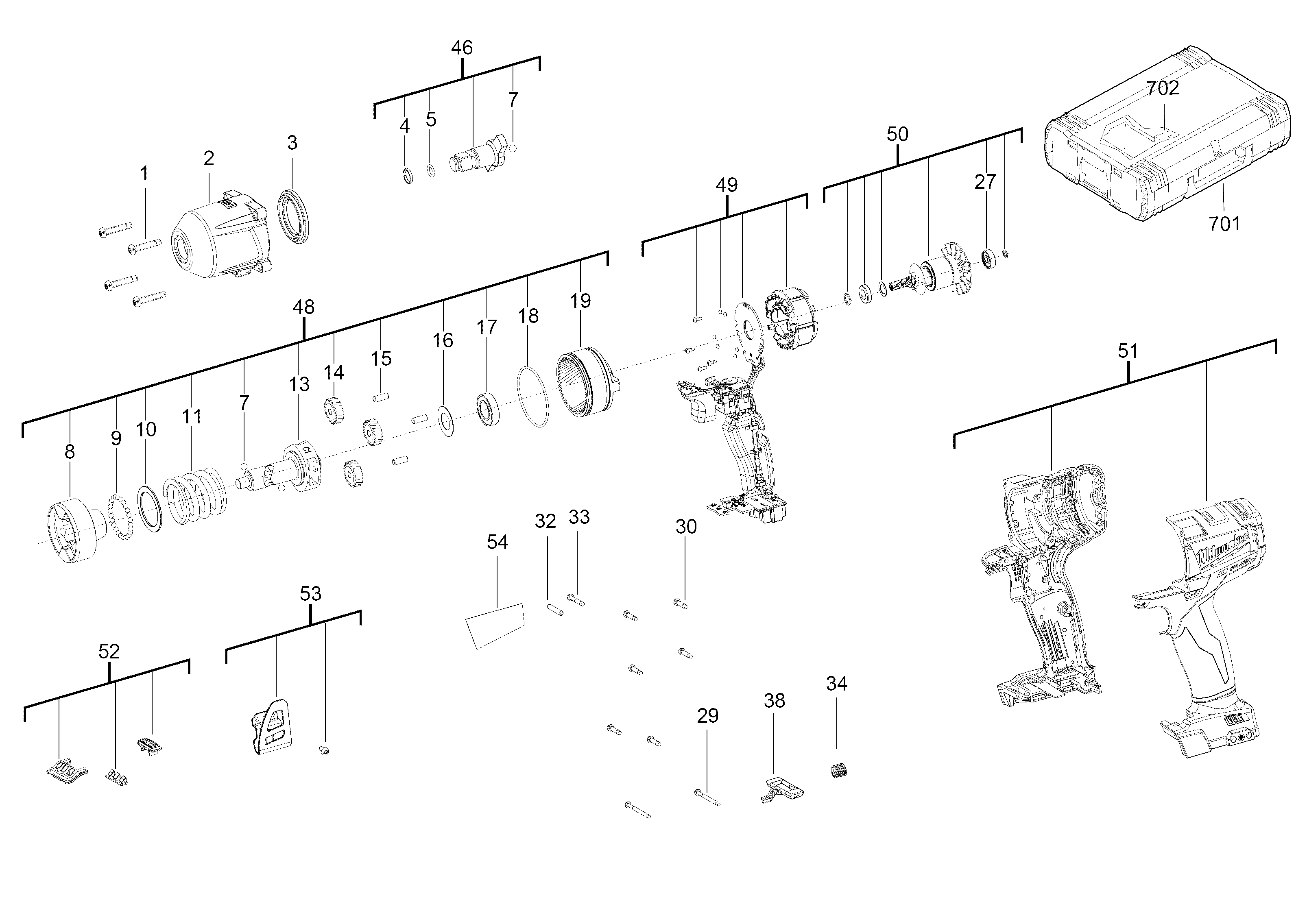 Here you will find all available parts and drawings of the 'Milwaukee 4000458411 ( M18FMTIWF12-0 )'. From here you can order all desired parts directly. Many parts must be ordered from the manufacturer, depending on the brand, this takes one to four weeks. All the information we have is on our website, we cannot advise you on what you need, for that you will need to return the machine for repair. Please note the following when ordering: