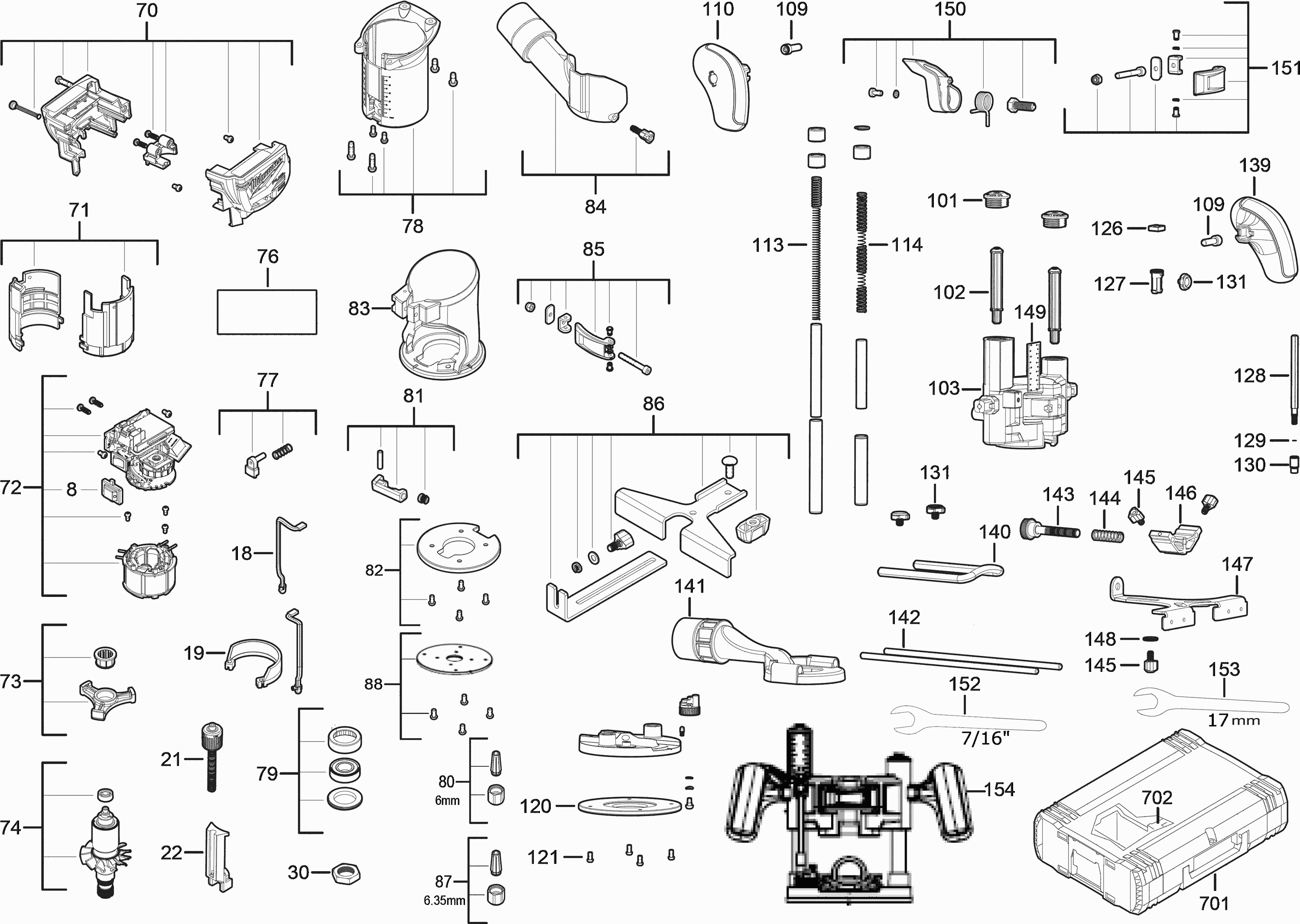 Spare parts list of model Milwaukee 4000474460 ( M18FTR-0X )