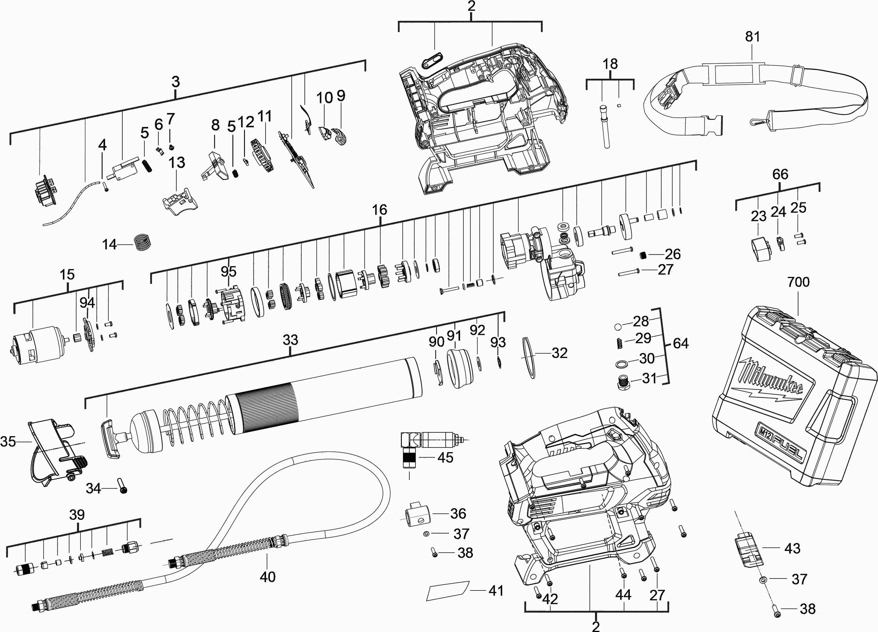 Spare parts list of model Milwaukee 4000440426 ( M18GG-0 )