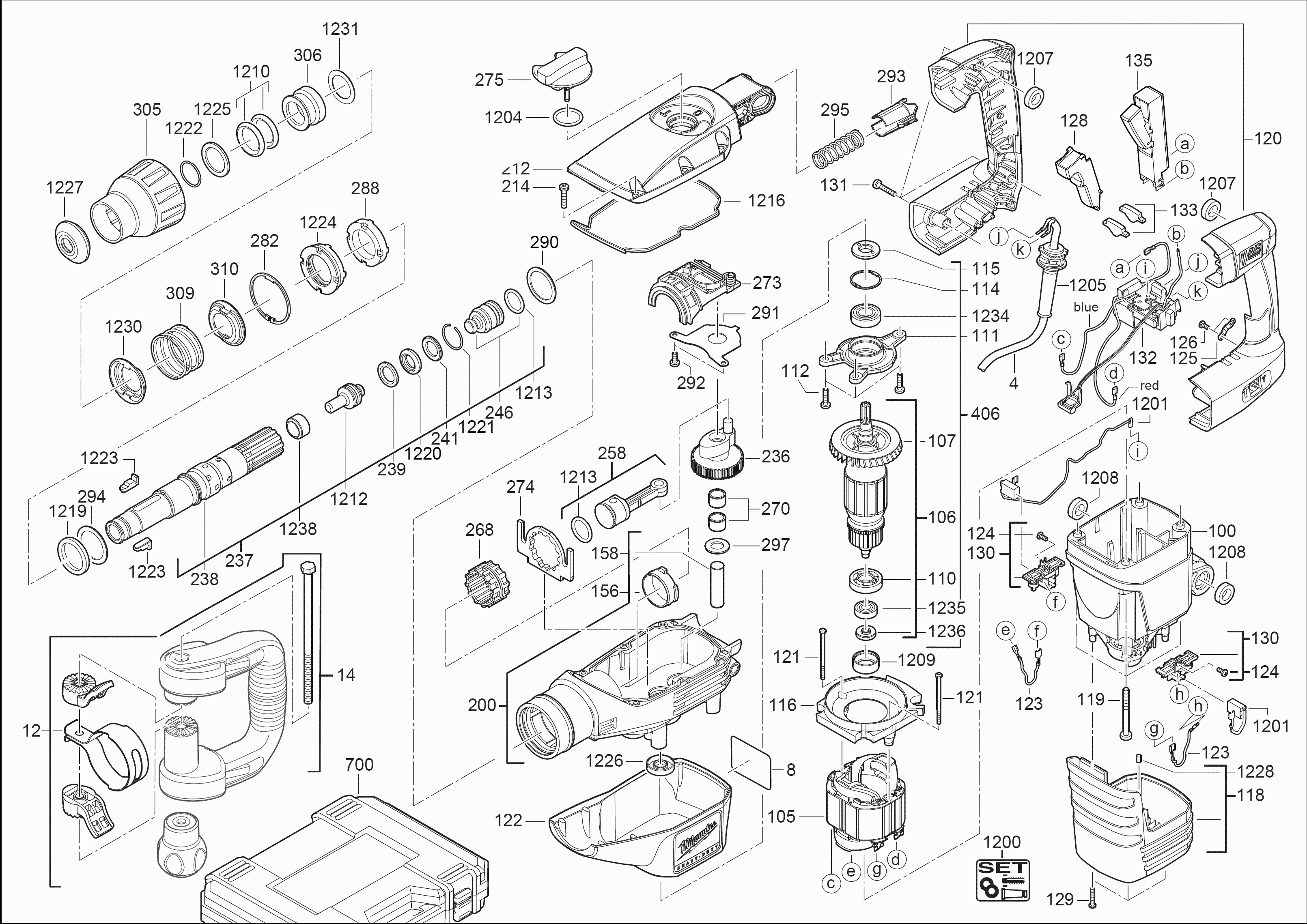 Here you will find all available parts and drawings of the 'Milwaukee 4000442162 ( MARTEAUXBURIN )'. From here you can order all desired parts directly. Many parts must be ordered from the manufacturer, depending on the brand, this takes one to four weeks. All the information we have is on our website, we cannot advise you on what you need, for that you will need to return the machine for repair. Please note the following when ordering: