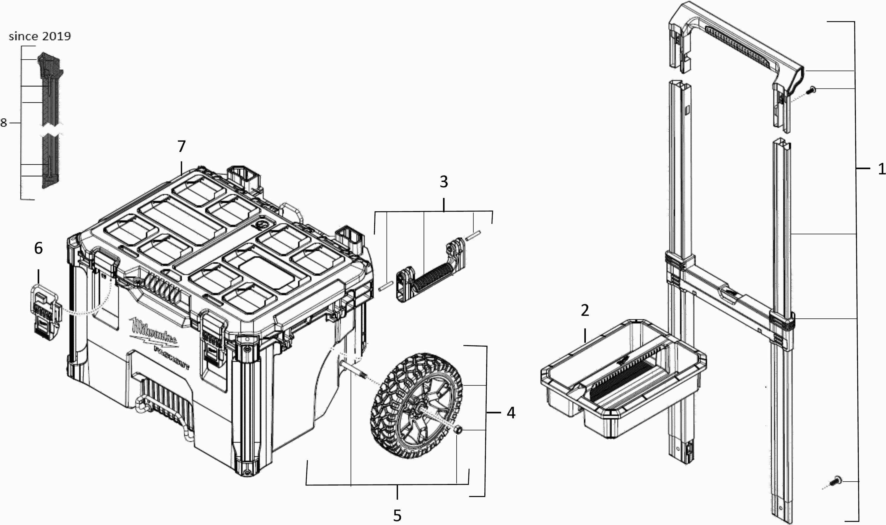 Spare parts list of model Milwaukee 4000469460 ( PACKOUTTROLLEYCASE1-1PC )