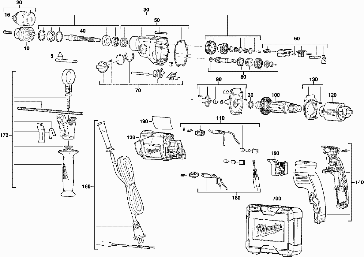 Here you will find all available parts and drawings of the 'Milwaukee 4000419596 ( PD2E24R )'. From here you can order all desired parts directly. Many parts must be ordered from the manufacturer, depending on the brand, this takes one to four weeks. All the information we have is on our website, we cannot advise you on what you need, for that you will need to return the machine for repair. Please note the following when ordering: