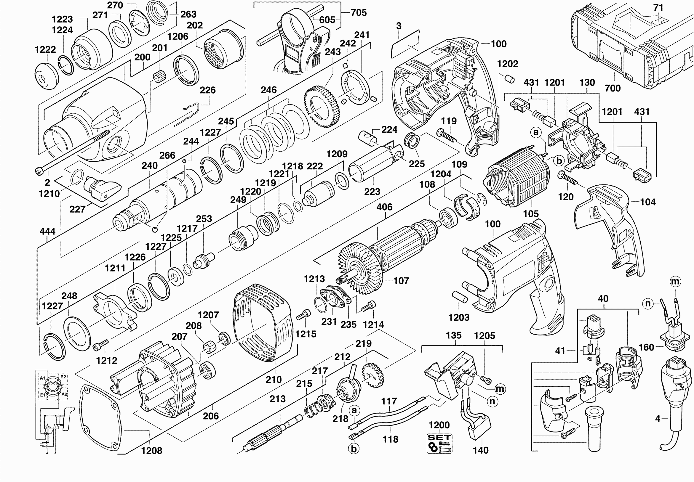 Spare parts list of model Milwaukee 4000396201 ( PFH25QE )