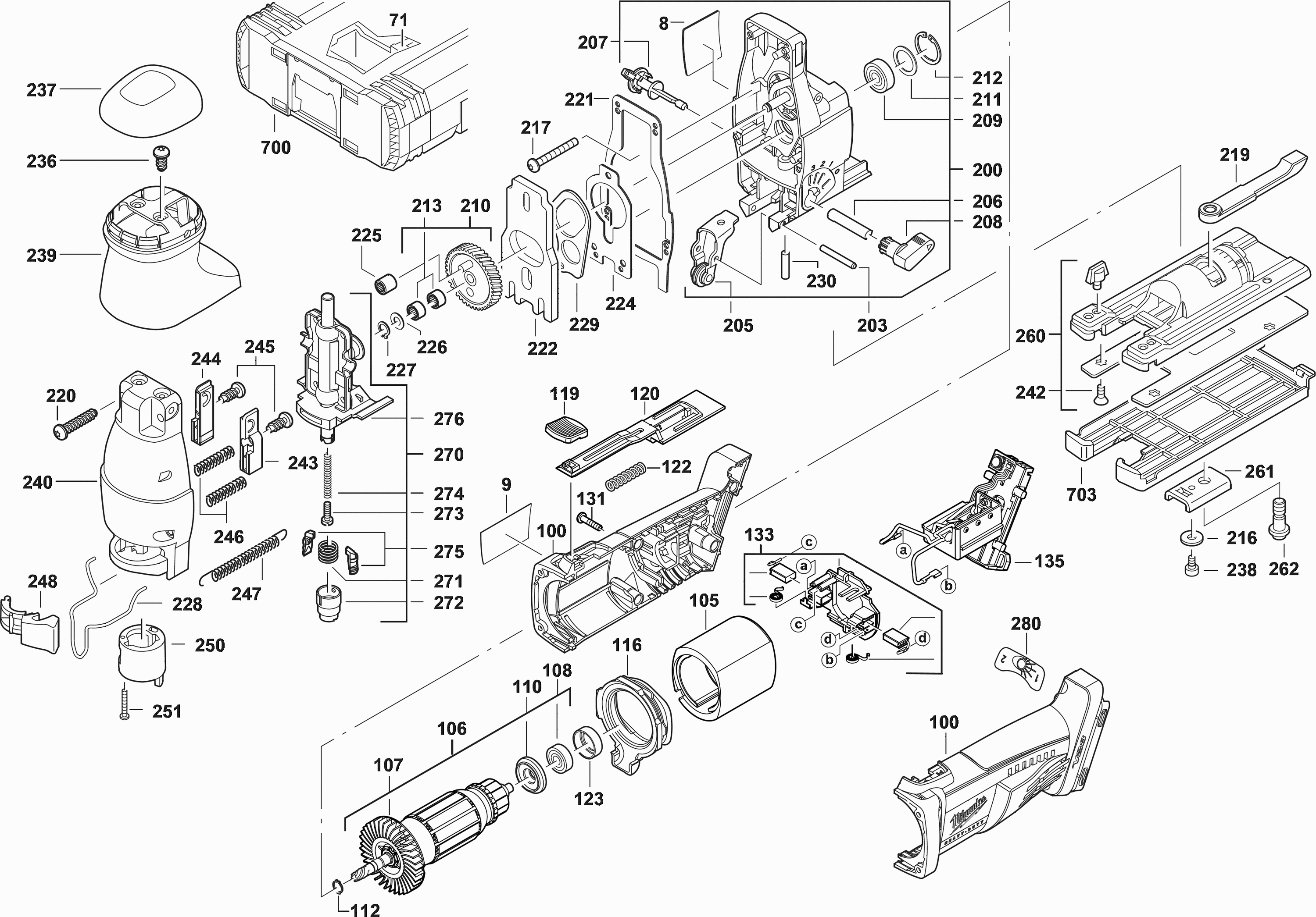 Here you will find all available parts and drawings of the 'Milwaukee 4000401771 ( V28JSB )'. From here you can order all desired parts directly. Many parts must be ordered from the manufacturer, depending on the brand, this takes one to four weeks. All the information we have is on our website, we cannot advise you on what you need, for that you will need to return the machine for repair. Please note the following when ordering: